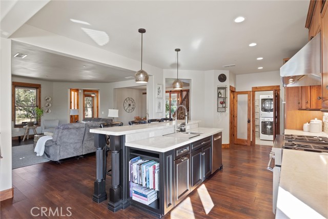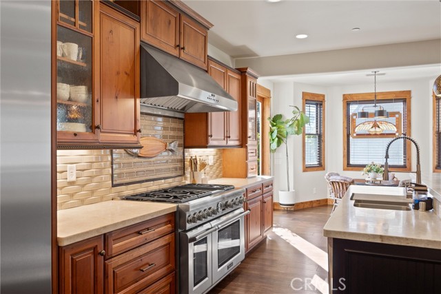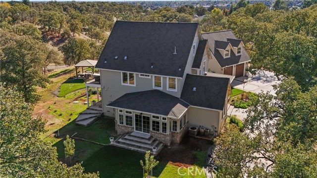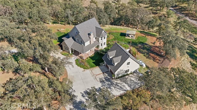 Tucked away in The Oaks, is this stunning custom-built 4-bedroom, 4-bathroom estate which offers timeless elegance and modern luxury, featuring 2,554 sq. ft. with an additional 350 sq. ft. of living space above the carriage-style garage. Every inch of this home reflects exquisite craftsmanship and thoughtful design, making it feel like a Better Homes & Gardens feature brought to life. Step inside to discover soaring ceilings, custom-milled doors and moldings, and abundant natural light pouring through elegant windows. The spacious living room features a custom stone fireplace and mantle, creating the perfect space to relax or entertain. The chef’s kitchen is a true showpiece, equipped with top-of-the-line Thermador appliances—including a restaurant-size refrigerator, 8-burner double oven range, and custom vent hood. Rich granite countertops, custom cabinetry, and a large island with seating and an integrated sink complete this gourmet space. The dining area opens through glass barn doors into a beautiful sunroom, perfect for enjoying your morning coffee or evening wine year-round. Downstairs also includes a bonus room with an ensuite bathroom, ideal as a guest suite, office, or additional bedroom. Upstairs, the primary suite is a private retreat with French doors leading to a serene lanai with hot tub to enjoy those starry nights. The spa-inspired bathroom features dual vanities, a soaking tub, and a luxurious custom tile shower for two. Two additional bedrooms and a full bathroom complete the upper level. The carriage-style garage includes its own bathroom and staircase leading to a 350+ sq. ft. finished living space—perfect for guests, a college-aged child, or potential short-term rental (VRBO/Furnished Finder). Note: The space does not include a kitchen; buyer to verify ADU potential. The backyard oasis has been recently upgraded with thousands in landscaping improvements—new sod, sprinklers, curbing, and a tranquil gazebo. Additional features include RV parking, generator backup, garden and herb spaces, and a cement driveway that completes this meticulously maintained property. This one-of-a-kind estate truly has it all—style, space, and sophistication—ready for you to move right in and make it your own. Located in the "Tierra del Roble" estates. Buyer to verify all information to their satisfaction.