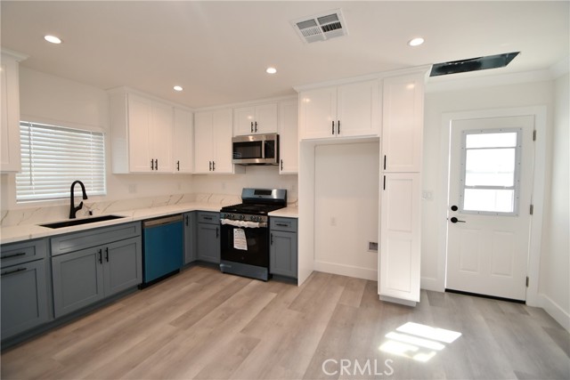 New construction with City permits. GREAT OPEN FLOOR PLAN. Close to Sofi Stadium. Kitchen cabinets with quartz counter tops in both units. Stoves, Hood Fans, Dishwashers in both units, microwaves in front unit, washer and dryer hook-ups in both units, air conditioner, central heating and tankless water heater in both units. High-end materials and fixtures in both units. Bathrooms with shower doors and quartz walls, new windows, new plumbing, new roof, all windows with blinds. All bedrooms with ceiling fans. Recessed lighting throughout. Best of all, property has NEW FOUNDATION AND SEWER PLUMBING. VACANT UNITS