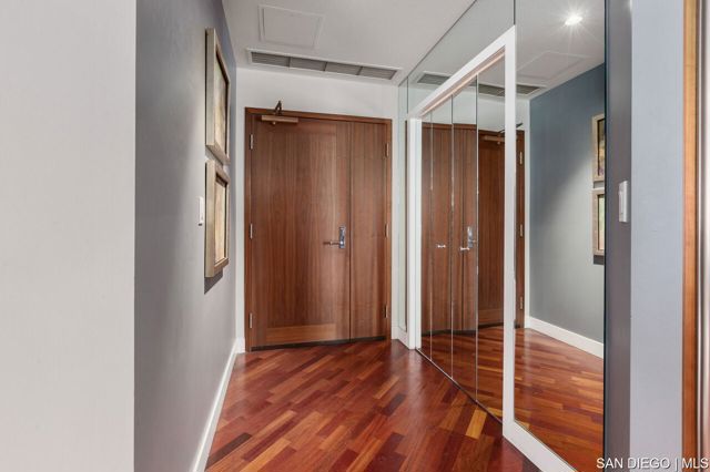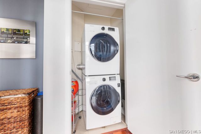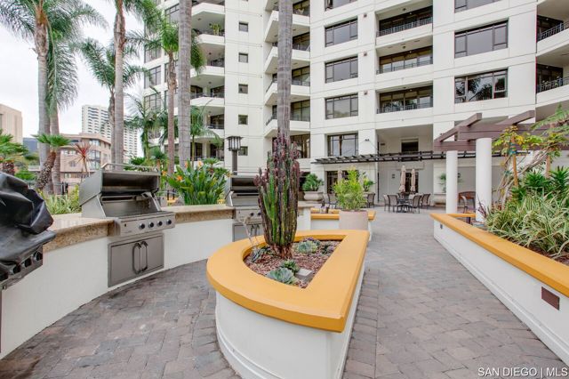 Welcome to Park Place, an iconic tower in downtown's sought-after Marina District. Enjoy unparalleled walkability to Seaport Village, Little Italy, dining, parks, waterfront attractions, and brand new RaDD building featuring Equinox, Board&Brew, and more to come! The complex also features a year-round heated pool and spa, as well as a fully-equipped gym, providing a perfect oasis for relaxation, fitness, and leisure in any season. Unit 806 offers a spacious one-bedroom layout with two full bathrooms and a versatile den that can be used as a second bedroom. The open living area features hardwood floors and a built-in bar with a wine fridge, perfect for entertaining. The gourmet kitchen includes a Subzero fridge and custom touches. Enjoy the convenience of two dedicated parking spaces and a separate storage unit with direct access from your parking space, complete with 24-hour guard services. This fully furnished home features a nearly new Restoration Hardware couch that transforms into a king bed, making it ready for immediate move-in. Experience urban luxury at Park Place where prime location meets sophisticated living. Don't miss your chance to own a piece of downtown's skyline!