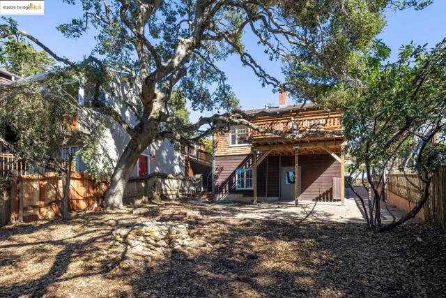 Nestled beneath a graceful canopy of heritage oaks, this classic North Berkeley bungalow captures the quiet beauty and craftsmanship of its era. Light filters through the trees and into every room, highlighting the home’s thoughtful proportions and timeless details. With approximately 1,034 square feet of living space*, the home offers a single-level floor plan with an accessible entry, two bedrooms, and one full bathroom. The sunny living room opens directly to a rear deck, perfect for morning coffee or an evening view of the Bay glimpsed through the branches. A covered front porch provides a welcoming transition from the front garden to the home, while an expansive rear yard invites outdoor living possibilities beneath the shelter of mature oaks. The home’s architectural character is expressed through wood shake siding, deep eaves with decorative knee braces, divided-light windows, oak floors, and built-in glass-front cabinetry that anchor the dining room with warmth and charm. Every detail reflects a balance of craftsmanship and simplicity, the essence of early Berkeley design. Located moments from North Shattuck favorites, including the Cheese Board, Chez Panisse, Live Oak Park, the Berkeley Rose Garden, and Codornices Park. Northbrae and Solano Avenue shops are all nearby.