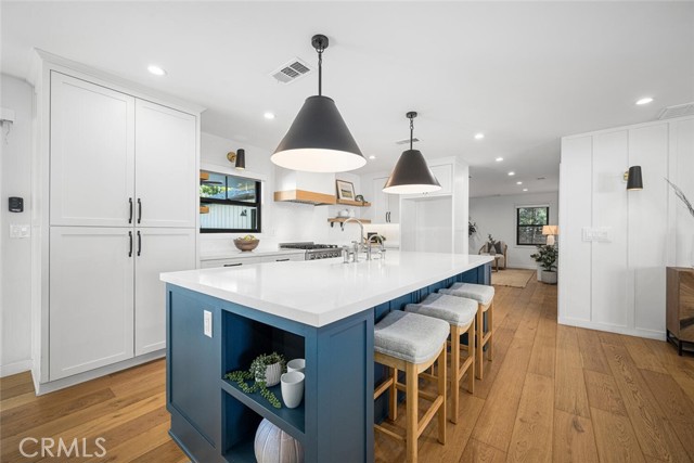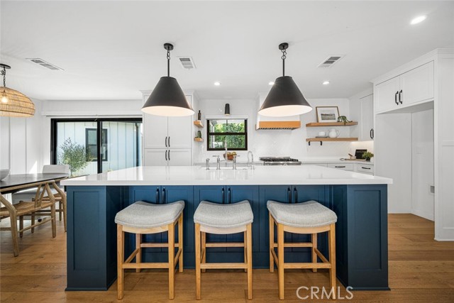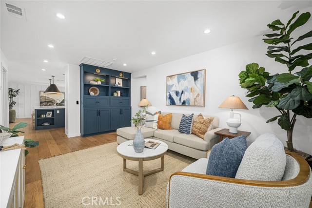 WELCOME TO YOUR DREAM HOME! 11822 Harrisburg Road offers the perfect blend of fine craftsmanship and modern convenience. Situated on an oversized 8,162 sq. ft. lot in one of Rossmoor’s most desirable interior tract locations, this stunning home features 3 bedrooms, 3 bathrooms, and 2,151 sq. ft. of living space. Fully remodeled and expanded down to the studs, the home embraces true open-concept living. The chef’s kitchen boasts custom-built cabinetry, quartz countertops, tile backsplash, white oak floating shelves, and a custom hood vent. A large island with a farmhouse sink anchors the kitchen, living, and dining areas—ideal for entertaining family and friends. The home’s three bedrooms include dual primary suites, each with a custom walk-in closet, plus an additional guest bedroom. A cozy family room with beautiful built-in cabinetry sits at the heart of the home, while the stylishly updated laundry room features Tiffany blue shaker cabinets, a laundry sink, and ample storage.The detached bonus room, equipped with a mini-split system for heating and air, offers endless flexibility—perfect as a home office, playroom, or guest suite. Smart home features include a Brilliant Smart Home Control system, Sonos built-in sound, and high-definition security cameras. Additional upgrades include board and batten wall paneling, European oak engineered hardwood flooring, Andersen dual-pane windows, tankless water heater, and recessed lighting throughout. The backyard is beautifully designed for outdoor living, with a large Alumawood patio cover featuring recessed lighting, ceiling fans, and patio heaters. Gorgeous paver stone walkways are surrounded by fruit trees and lush privacy landscaping. Located within walking distance of Rossmoor Elementary and the award-winning Los Alamitos School District—don’t miss your chance to make this house your NEW HOME!