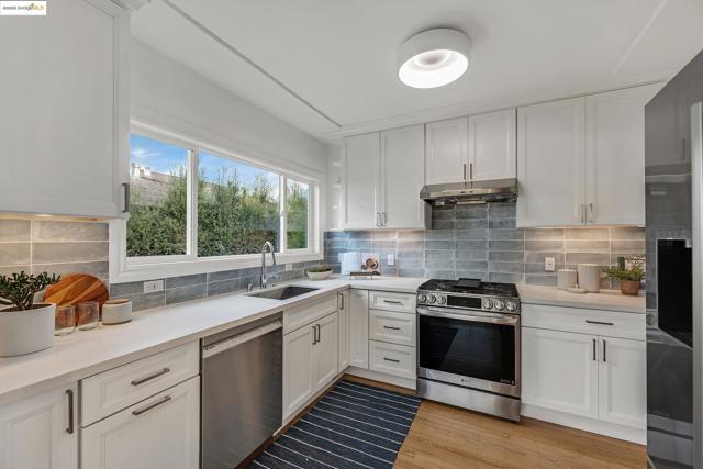 Welcome to this beautifully refreshed 2 bedroom, 1 bath bungalow that blends classic Berkeley architecture with modern style. From the bold arched entry to the sun-soaked living spaces, every corner of this home is designed to feel warm and comfortable. Step inside to discover a bright open-concept living and dining area framed by oversized windows and charming period details. The newly updated kitchen features sleek quartz counters, stainless steel appliances, new shaker cabinetry, and a tile backsplash that brings a contemporary coastal feel to your cooking experience. Both bedrooms offer generous natural light with a stylishly updated bathroom that includes modern tilework and refined fixtures. Convenience lives here too with an in-home laundry closet and an abundance of storage throughout. Relax outdoors on your welcoming front terrace surrounded by lush, low-maintenance landscaping and a private gated setting. Enjoy being moments from Berkeley’s best conveniences: local parks, beloved cafes, shopping, BART, and UC Berkeley all nearby. Open Sunday November 2nd from 2-4 pm. Brokers Tour Thursday October 30th from 10 -1