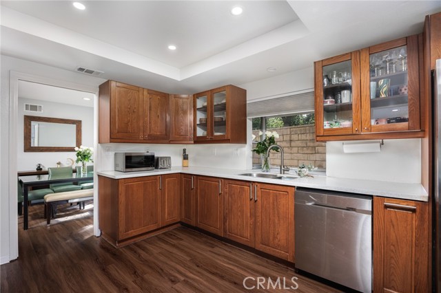 Welcome to 5303 Mark Court, Agoura Hills, CA 91301 Discover this beautifully updated and spacious townhome tucked away on a quiet cul-de-sac in the heart of Agoura Hills in the highly desirable Oakview Gardens community. With 3 bedrooms, 2.5 bathrooms, a cozy den with fireplace, and approximately 2,017 sq ft of living space on a 3,554 sq ft lot, this home blends modern upgrades with everyday comfort. Step inside to warm wood-like laminate floors that flow throughout the main level, creating a welcoming and cohesive atmosphere. The first floor features a generous living room, a dining area perfect for entertaining, and a versatile enclosed den ideal for guests, a 4th bedroom, a home office, or a media room. The semi open-concept kitchen is the heart of the home, showcasing quartz countertops, a modern refrigerator, and abundant natural light—perfect for cooking and gathering. Upstairs, enjoy beautiful hardwood floors and a tranquil primary suite with a fully remodeled bathroom featuring designer finishes, dual sinks, and a walk-in closet. There’s even a cozy nook for an exercise bike or reading chair overlooking the serene private backyard. Two additional bedrooms offer ample space for guests or family. The backyard and private side space have been beautifully landscaped with artificial grass, outdoor lighting and a 6 foot fence and gate which creates privacy in this large entertaining space. Perfect for soaking up the California sunshine. Additional highlights include: Leased solar panels for energy efficiency Access to a community pool and spa Located in the much sought out Las Virgenes Unified School District Conveniently located to freeway access Close to parks, hiking trails, shopping, dining, and entertainment With its perfect blend of style, comfort, and location, 5303 Mark Court is more than a home—it’s a lifestyle