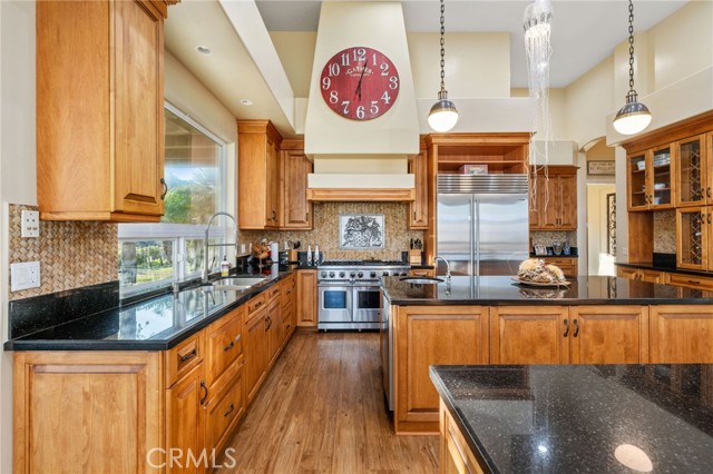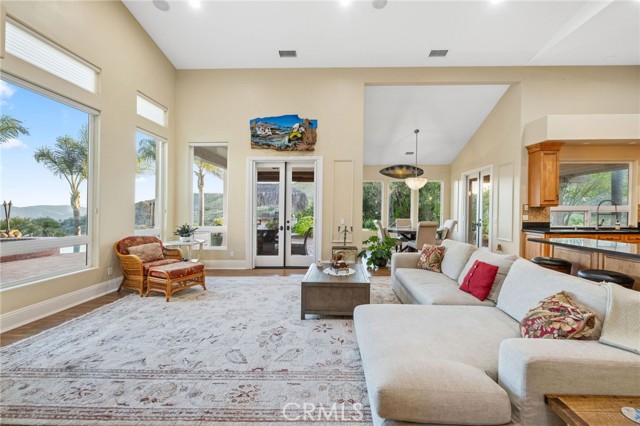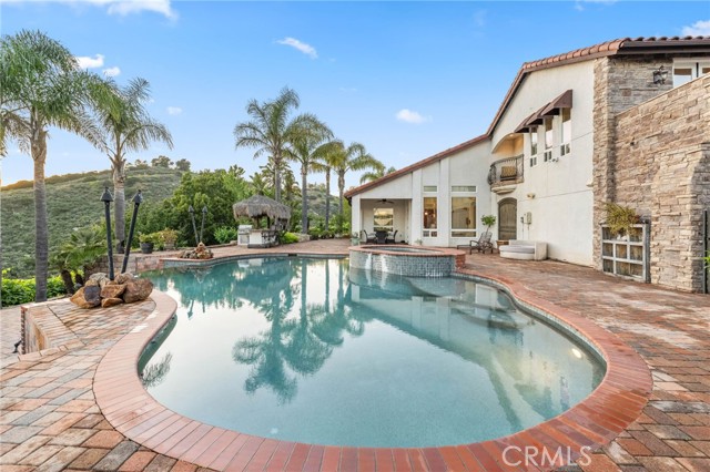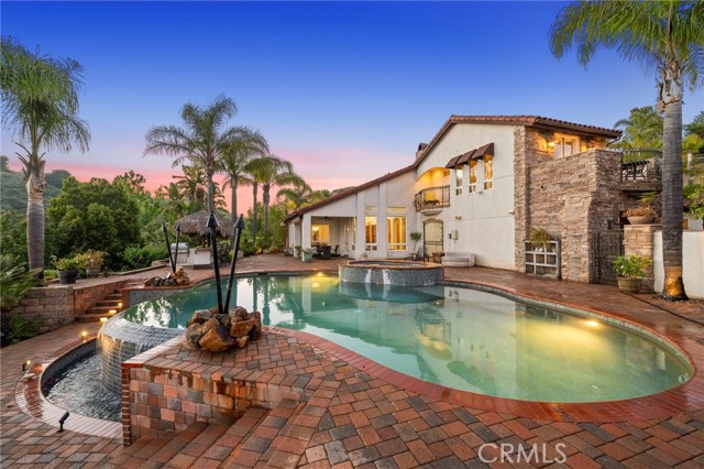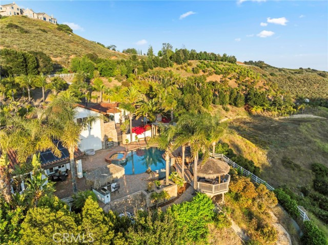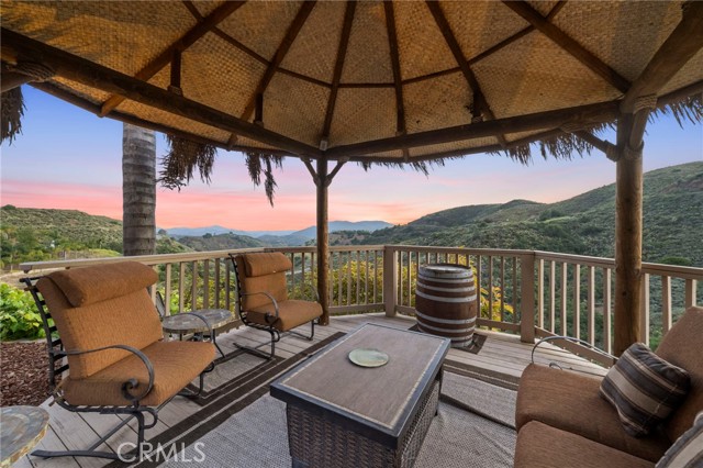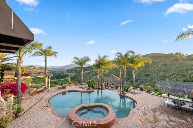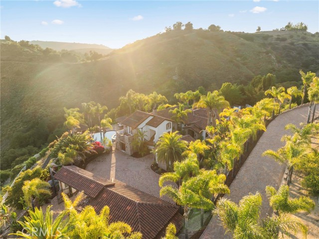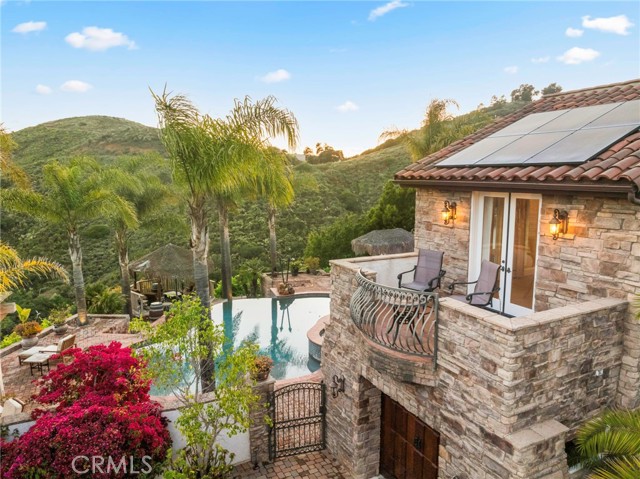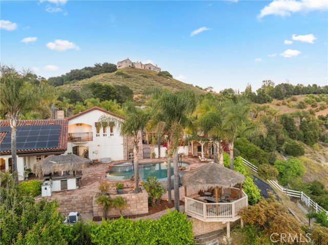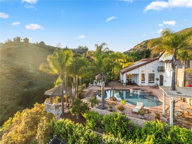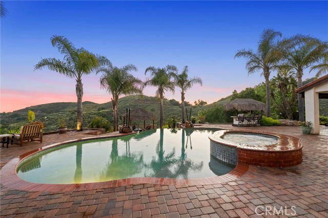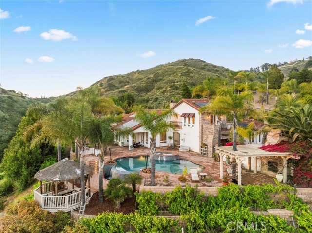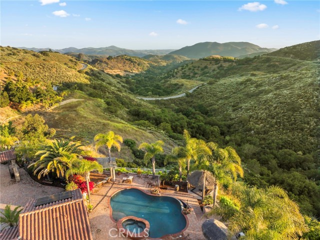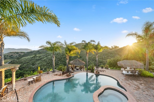 Welcome to 44915 Palladian in the beautiful De Luz community in the hills above Old Town Temecula, tucked away in one of the most premiere privately gated communities in the Temecula Valley, Renaissance Estates. This luxury estate property on almost five acres is thoughtfully laid out with over 4400 square feet of living space, arriving through your very own private electric gate entrance. Beautiful gourmet kitchen with an abundance of wood cabinets and a six-burner Viking stove, Sub Zero refrigerator, and a large walk-in pantry. The main house features a huge master suite with a spacious master bath, including your own two-person jetted tub and a two-sided fireplace. The main house guest bedroom has a walk-in closet, private bath, and its own private patio. The separate casita tucked away close by is perfect for guests, visiting grown children or family, or teenagers wanting their own space. It has its own private living area with fireplace and private bath. There is a second separate guest quarters outside the main house with two balconies and a private bath, the only part of the estate on the second level with views abound. The backyard has a private infinity edge pool, raised spa, forever views all the way to the ocean, outdoor fireplace, palapa BBQ island, and lots of sitting areas. Tropical landscaping all around with many fruit trees. Beautifully finished four-car garage. There is a one-car separate garage attached to the main house that could easily be transformed into additional living space. PAID FOR SOLAR too! You just have to see this one to really feel how truly amazing it is. see your new oasis waiting for you.