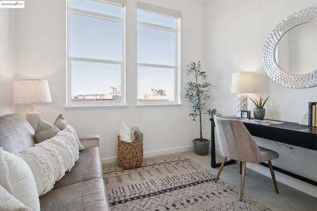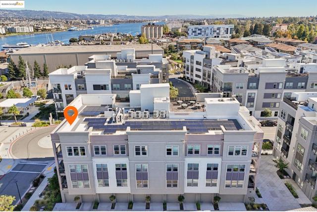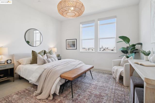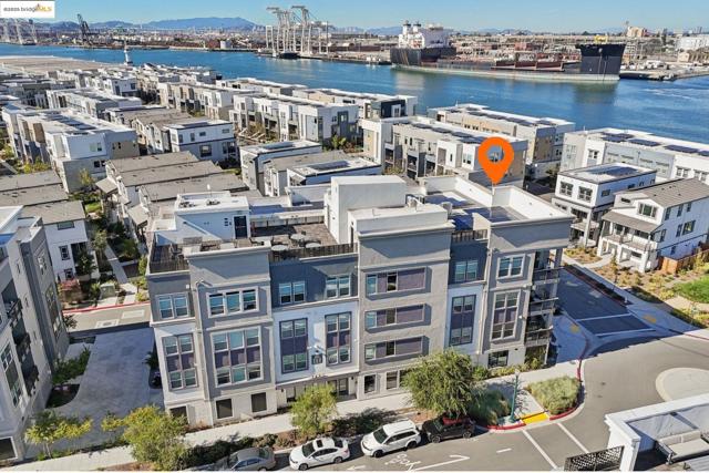 Exceedingly rare opportunity to own the one and only north-facing penthouse at Bay 37 - affectionately known as “The Unicorn.” This single-level, flat-style residence was showcased as the original model home for the community, celebrated for its breathtaking views of both the San Francisco skyline and the Oakland Estuary - unique among all Bay 37 homes. The coveted Plan 4 layout, largest of the flat-style designs, is bathed in natural light and offers an expansive open-concept living area with a chef’s kitchen, oversized island, and inviting breakfast nook flowing seamlessly to a private deck - perfect for morning coffee or sunset views. The elevator-serviced building provides a rooftop deck, secure entry, bike storage, and a private two-car garage. Residents enjoy a waterfront lifestyle with scenic walking paths, a park, picnic areas, playground, and community dock. Conveniently close to Bohol Circle Immigrant Park, Target, Safeway, and local dining. Commuting is effortless with a free shuttle to 12th St. BART, water taxi to Jack London Square, and nearby ferry access to San Francisco. A rare combination of design, light, and coastal luxury - the ultimate expression of Alameda’s modern waterfront living.