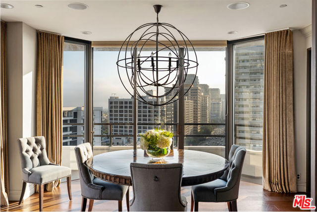Welcome to one of the most coveted addresses on the Wilshire Corridor, Wilshire House, the only "A" building with wrap-around balconies. This completely remodeled southwest-facing residence showcases spectacular city vistas, ocean views, and Catalina Island on a clear day, all framed by floor-to-ceiling glass and a balcony that spans the length of the condo. Step into a grand marble entry that flows into a sophisticated living space with hardwood floors and abundant natural light, ideal for entertaining. The dining room opens to the stunning views and features a one-of-a-kind custom bar designed for unforgettable gatherings. The kitchen offers new appliances and elegant finishes. The luxurious primary suite boasts two walk-in closets and a marble bath. The second bedroom with its own bath works beautifully as a guest room, den, or home office. Special features include a built-in wine cellar and custom leather floors in the dining room and primary bedroom. Wilshire House Amenities: 24-hour valet & security, In-house engineers for on-demand repairs, lit tennis court, Saline swimming pool, & spa, fire pit & outdoor entertaining area, State-of-the-art fitness center, Recreation/banquet room, library, elegant lobby with a tranquil waterfall feature. No open houses permitted; private tours available by appointment.