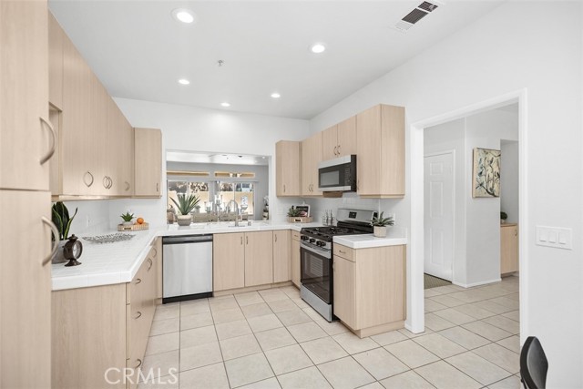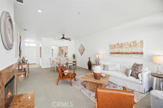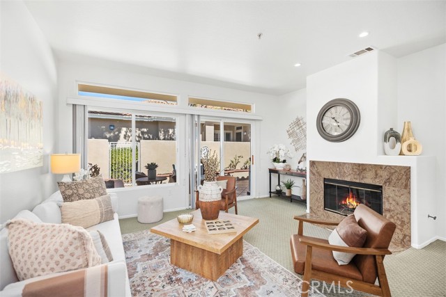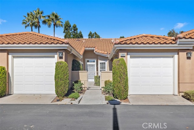 Resort-Style Patio Home/Condo in Mission Viejo’s Premier 55+ Community of Palmia. Discover the ultimate in active adult living in this beautifully updated single-story condo located in the sought-after guard-gated community of Palmia. Designed for comfort and ease, this no-steps home offers bright, open living spaces and stylish modern updates throughout.brand Step inside to find a freshly updated interior featuring designer paint, new lighting and fixtures, ceiling fans, and a brand-new HVAC system for year-round comfort. The open-concept great room is anchored by a cozy gas-burning fireplace and seamlessly flows into the dining area and open niche kitchen, complete with a brand new suite of stainless steel appliances. The spacious primary suite offers a peaceful retreat with a lighted ceiling fan, large walk-in closet, and a beautifully appointed primary bath featuring a walk-in shower, dual-sink vanity, and private toilet area. Both the primary suite and the living area open to a lovely patio yard, enhanced with newer landscaping and a sprinkler system—perfect for morning coffee or entertaining friends. A secondary bedroom with a large picture window and lighted ceiling fan, plus a separate full bathroom, provide comfort and flexibility for guests or a home office. Separate interior laundry room. Enjoy two attached single car garages, both with automatic doors. Property has been re-piped with PEX. Such a sage and gorgeous gated community... Enjoy all that Palmia has to offer, including resort-style amenities such as a clubhouse, pools, spa, fitness center, pickleball and tennis courts, a world class 18 hole putting green, table games, card rooms, billiards, library, a grand ballroom, and countless social activities—all within the heart of Mission Viejo. Additionally, exterior maintenance of the dwelling including front landscape, basic cable with several premium channels and WiFi are covered by the HOA. Life simplified! Enjoy Lake Mission Viejo privileges too!