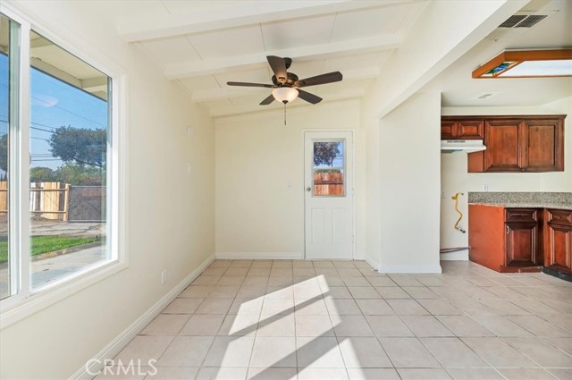 Looking for a 3-bedroom, 2 bath home with RV access? You've got it here! Boasting 3 bedrooms and 2 baths, the interior features freshly painted walls, an updated kitchen with newer cupboards and granite countertops, and an eating area with a ceiling fan. The two bathrooms showcase upgraded vanities, one with a shower and the other with a tub-shower combination. Wood beamed ceilings, base molding and tile flooring throughout completes the interior of this home. The property's curb appeal is enhanced by its large corner lot on a tree lined street, fresh lawn front and back with auto sprinklers, and new exterior paint. RV gate access allows for parking a large RV, while a detached covered patio provides a shaded area for relaxation or for use as a carport. There is plenty of room for parking additional vehicles or toys off the street. OR, this is the perfect access area to build an ADU (Accessory Dwelling Unit) for parents, children or renting for additional income. This home is ready for you to move in to start enjoying and making it your home. Be sure to check out the video tour. This home is for sale, not for rent or lease.