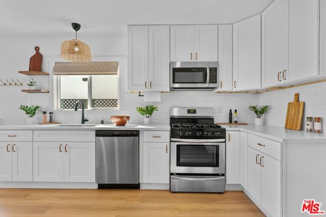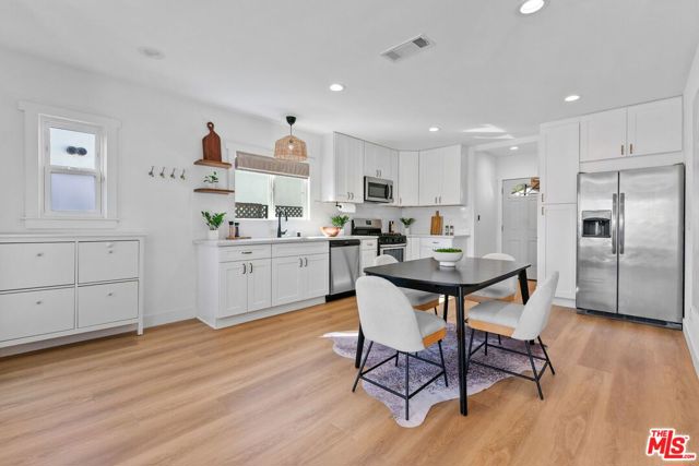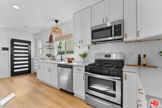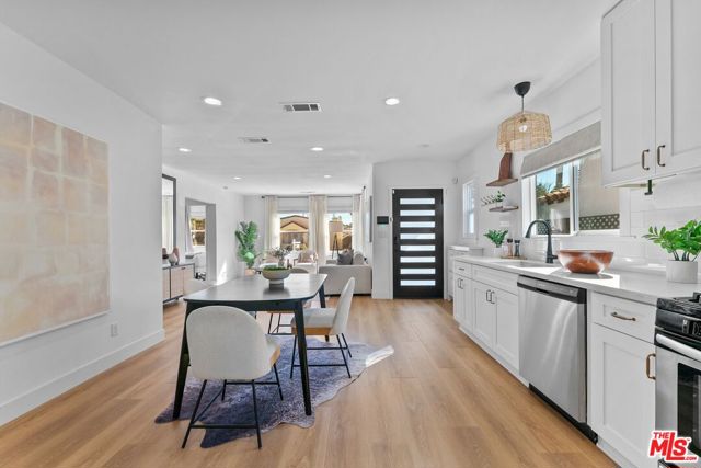 Remodeled with modern sophistication and thoughtful design, this Picfair Village residence with a fully permitted ADU offers exceptional versatility and style. Every detail reflects quality and intention, from the sleek Frigidaire stainless steel appliance suite to the quartz countertops, custom cabinetry, and cohesive finishes that define the open-concept kitchen and living areas. Natural light pours through every space, highlighting the home's clean lines, airy flow, and understated elegance. The main house features three spacious bedrooms and two beautifully finished baths, including a tranquil primary suite with a dual-sink quartz vanity and a walk-in shower with designer tile and fixtures. Luxury vinyl plank flooring runs throughout, providing both durability and warmth, while updated systems and a newer roof offer peace of mind and lasting value. The detached ADU feels like a boutique guest retreat with its own private entrance, full kitchen with matching Frigidaire appliances, quartz counters, and a full bath. Perfect for visiting family, a creative studio, or rental income, it adds flexibility without compromising style. Set on a tree-lined street in one of Los Angeles's most sought-after neighborhoods, this property embodies the best of Los Angeles living moments from Culver City, The Grove, and some of LA's most beloved dining and coffee spots, yet tucked into a community that feels residential and welcoming.