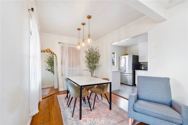 Timeless Charm Meets Modern Living in the Heart of Whittier Welcome to this beautifully maintained 2-bedroom, 1-bathroom gem located in one of Whittier’s most sought-after neighborhoods. Blending original character with stylish updates, this home offers comfort, functionality, and versatility. Step inside to find gorgeous original hardwood floors flowing through the spacious living and dining areas. The formal dining room leads into an updated galley-style kitchen featuring sleek countertops, custom floating shelves, and ample cabinetry—perfect for everyday cooking or weekend entertaining. Both bedrooms are bright and generously sized. The renovated bathroom feels like a personal retreat with a walk-in shower, double vanity, and beautiful custom tilework—spacious, stylish, and highly functional. Step outside to a private backyard oasis, complete with a blend of brick and grass landscaping, covered patio with ceiling lights, and plenty of shade—ideal for hosting, lounging, or al fresco dining. Additional highlights include a detached 2-car garage, currently converted into a fully equipped studio-style ADU. With its own kitchen, bathroom, and private entrance, it’s perfect for guests, rental income, or multi-generational living. The rear of the property includes assigned parking with alley access and a rolling gate for added privacy, while ample street parking makes it easy to host family and friends. This home checks all the boxes—charm, updates, indoor/outdoor living, and income potential. Conveniently located near parks, shopping, great schools, and freeway access! Don’t miss your chance to own this exceptional property—schedule your private showing today!