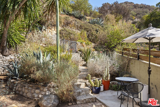 Elevated above the street and set back for maximum privacy, this exceptional residence offers a serene retreat on an expansive 8,871 sq. ft. lot. This beautifully updated 1932 stone house combines a rare blend of original details and modern updates providing ultimate comfort with direct access to the natural beauty of the Verdugo Mountains. Behind its gated entry, you step into the fully enclosed grounds where you'll discover a spacious flat yard and multiple outdoor living spaces, including a covered dining area perfect for entertaining or relaxing in total seclusion. A private rear gate opens onto a trail providing effortless access to miles of hiking and recreation. Inside, the home retains its original character while thoughtfully incorporating high-end updates. Upstairs the remodeled primary suite is a luxurious sanctuary, featuring vaulted ceilings, high quality Marvin Integrity windows, mountain views, a beautifully updated bathroom with Cle tile, a walk-in closet, ceiling fan, remote-controlled blinds, and its own dedicated HVAC zone for personalized comfort. On the main floor the updated kitchen offers extensive, recently redone cabinets, stainless appliances and a built-in pantry cleverly tucked away beneath the staircase. The kitchen connects to a stunning sundrenched dining room with built-in shelves and two walls of windows and doors to the outside, creating a seamless flow between indoor and outdoor living. The spacious living room features a dramatic floor-to-ceiling stone fireplace and stained-glass windows. At the far end of the house the generous secondary bedroom with walk-in closet connects to a den with built-in shelves and another full bathroom allowing it to easily function as a second primary suite. A detached 400 sq ft studio with half bath offers infinite possibilities whether as a creative space, home office, guest quarters, gym or an easily convertible ADU. The studio features new hardwood flooring, a separate HVAC system, tankless water heater and attic storage. The oversized two-car garage has ample storage and 220v power for EV charging. Other recent upgrades include new roofs and gutters, and a new all-electric HVAC system. This magical property can feel like a world of its own but is just minutes from all the restaurants and shopping of downtown Burbank and a short 15-minute commute to major studios and much of the entertainment industry. The property offers access to Burbank's top-rated school district and benefits from utility rates less than half of LADWP's. Don't miss this rare opportunity to join the historical Country Club neighborhood, one of Burbank's most desirable settings.