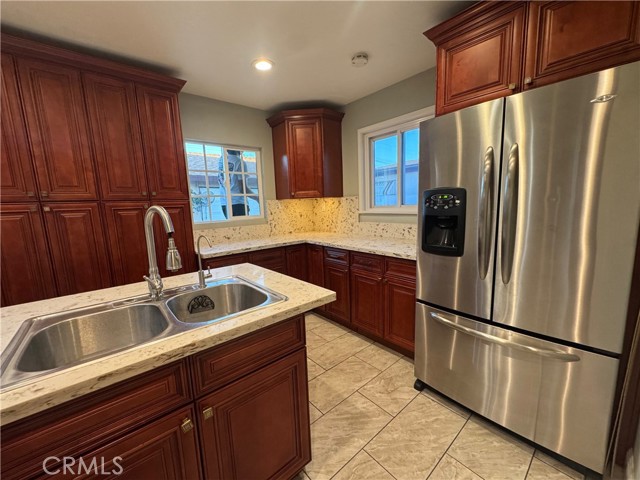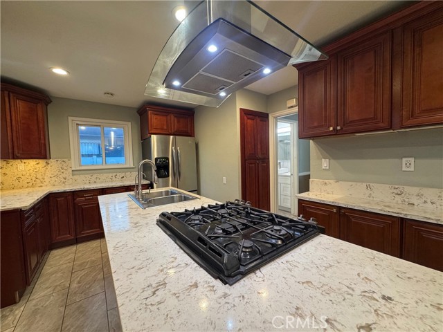 Beautiful single story home located on a quiet cul-de-sac in West Covina featuring approximately 1,989 square feet of living space on a 9,848 square foot lot with 4 bedrooms plus optional 5th and 3 remodeled bathrooms. The updated kitchen offers white stone counters, shaker-style cabinetry, recessed lighting, vent hood, and a center island. Bathrooms feature white stone counters, frameless shower doors, and recessed lighting. Central A/C and heating provide year-round comfort with tile flooring throughout the home. The property includes a long gated concrete driveway with room for multiple vehicles, a detached 2-car garage with ADU potential (verify with city), a covered entertainment patio with outdoor bar, large storage shed, fruit trees, and well-maintained landscaping in front and back. Conveniently located near schools, parks, shopping, dining, and commuter routes. Ideal for multi-generational living.