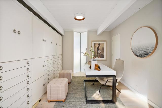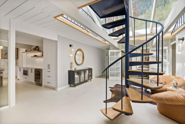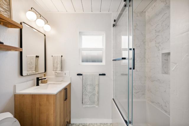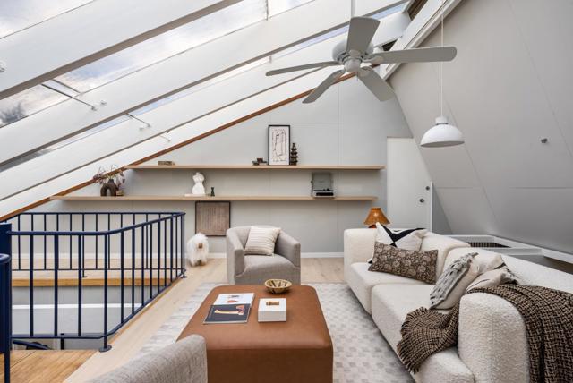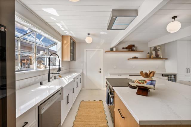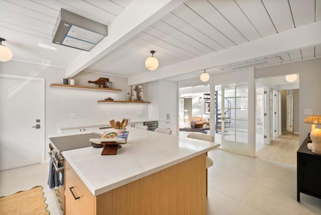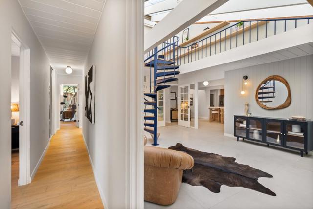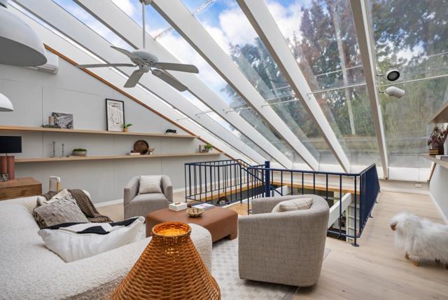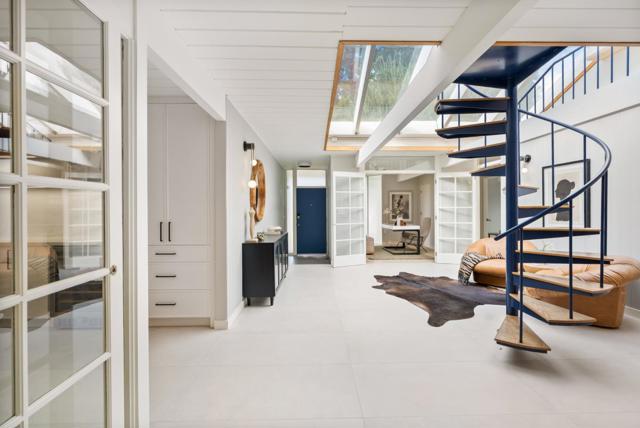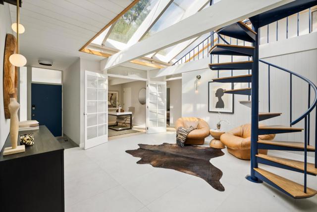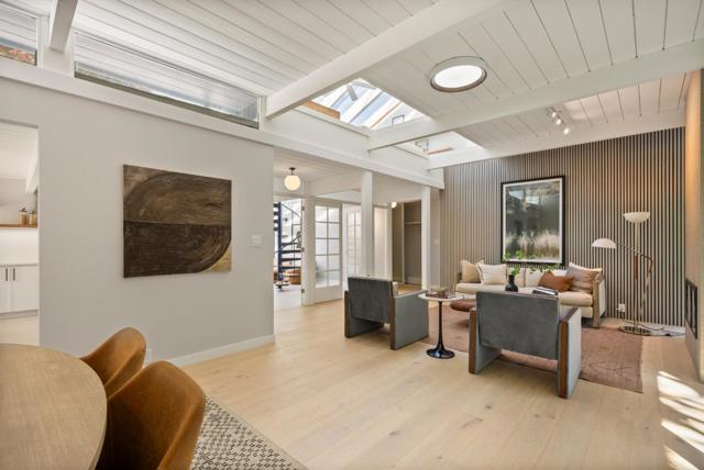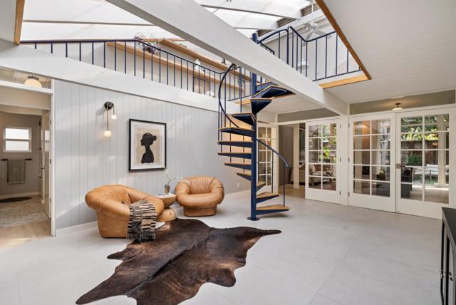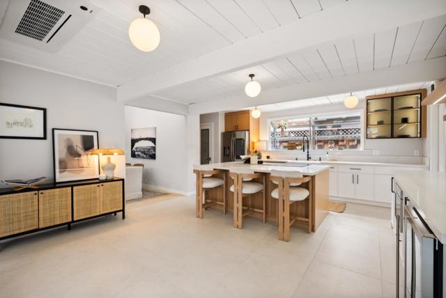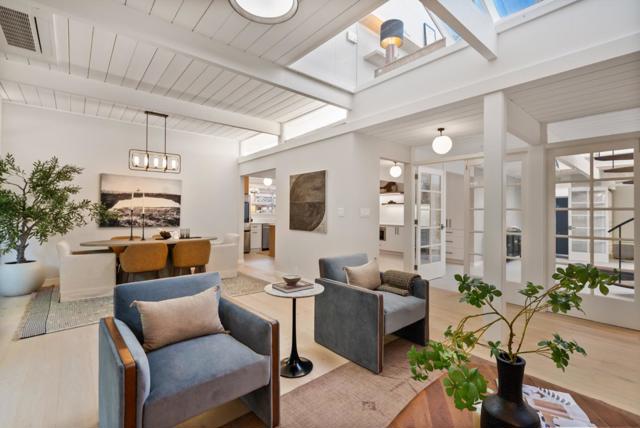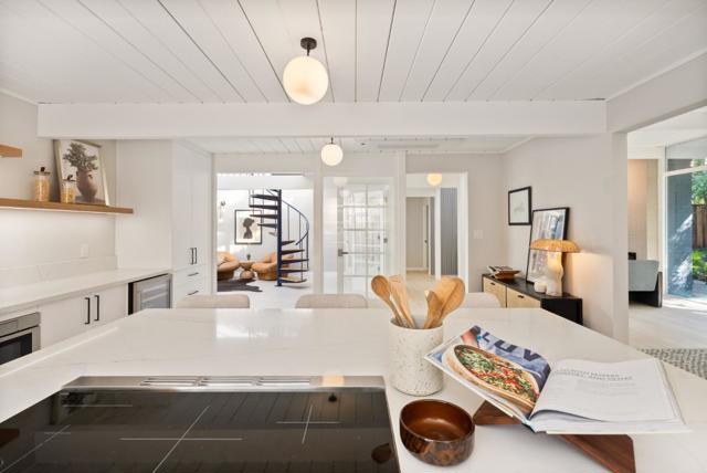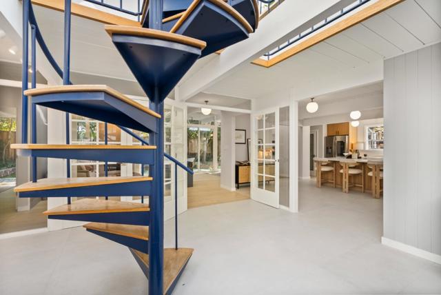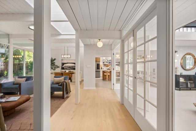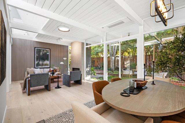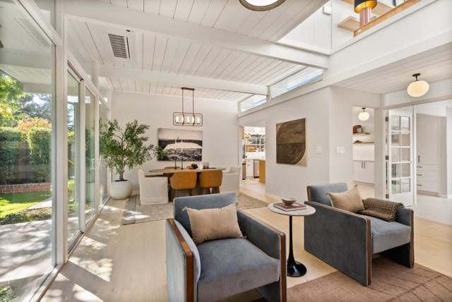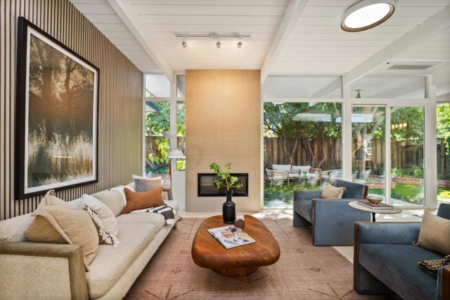Stunning modernized Eichler in San Joses sought-after Fairglen neighborhood! Completely renovated from top to bottom, this home blends mid-century charm with modern comfort and convenience. Signature Eichler features have been thoughtfully preserved open-beam ceilings, walls of glass, and seamless indoor-outdoor flow now enhanced with fresh design and thoughtful updates. The centerpiece of the home is a covered atrium with a striking half-gable roofline, accessed by a graceful spiral staircase, creating a dramatic and inviting entry point that fills the home with natural light. The open-concept kitchen features sleek cabinetry, quartz countertops, premium stainless appliances, and an oversized island perfect for gatherings. Spacious living and dining areas open to a private backyard, ideal for entertaining or quiet evenings. Spa-inspired bathrooms showcase designer finishes, custom tilework, and frameless glass showers. Enjoy year-round comfort with a new central heating and cooling system featuring individual split-unit controls, updated electrical and plumbing, and energy-efficient upgrades. Every surface has been renewed, creating a home that feels both timeless and brand new the perfect blend of Eichler design and modern living.