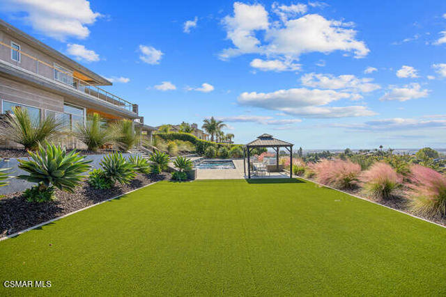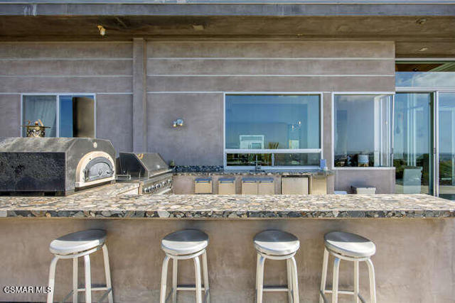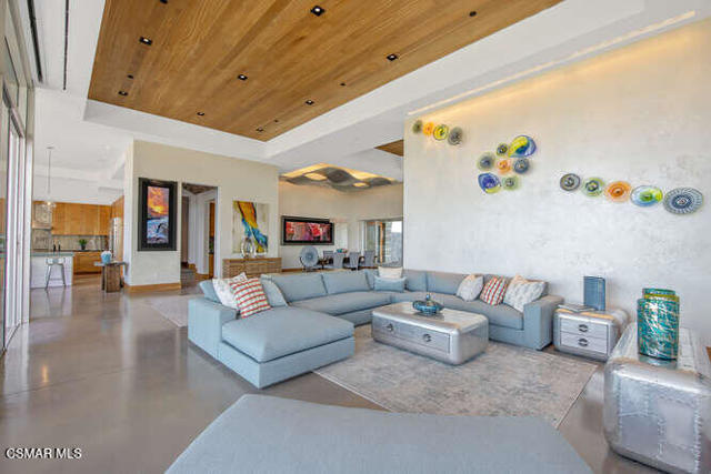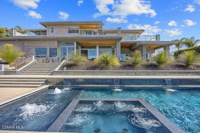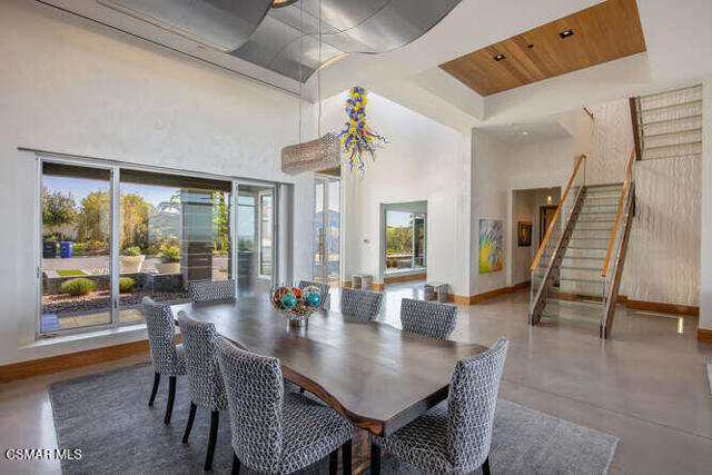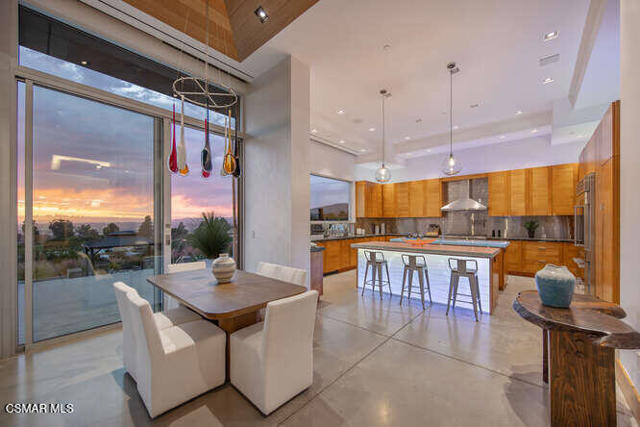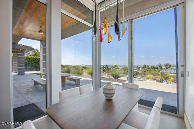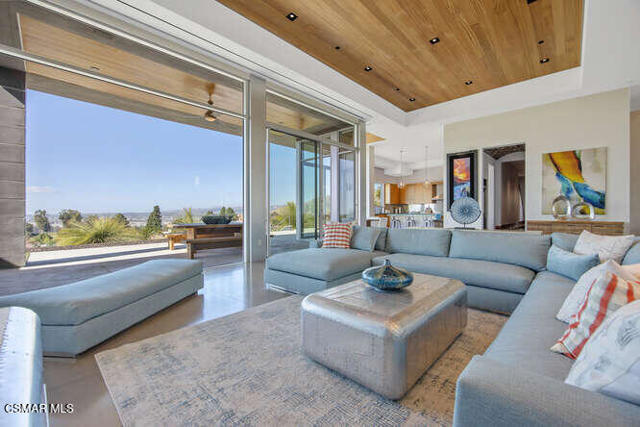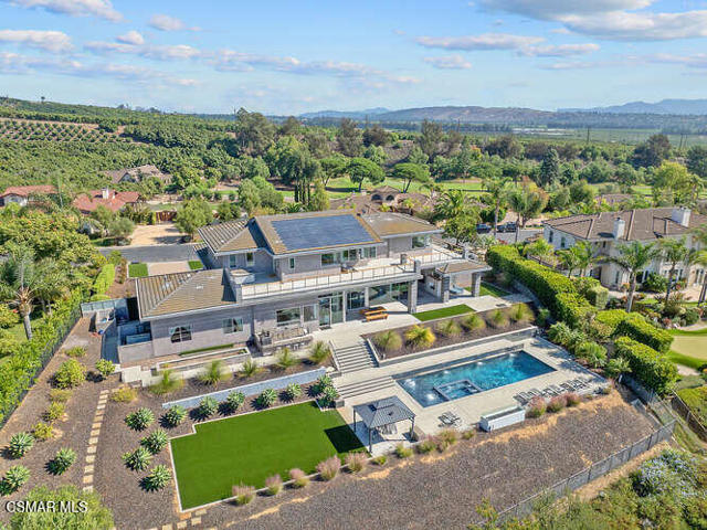 Architectural Luxury with Ocean-Island, Golf Course & Sunset Views! Privately gated community and perfectly positioned above the 17th fairway of The Saticoy Club, this extraordinary Somis estate captures the very best of California architecture, design, and lifestyle. With panoramic views of the Pacific Ocean, Channel Islands, and the club's lush greens, 4941 Northridge Drive is both a sanctuary and a statement of artistry.Inspired by Frank Lloyd Wright's philosophy of organic design, this nearly 6,800-square-foot residence blends natural materials, clean lines, and walls of glass that dissolve the boundary between indoors and out. Inside, polished concrete floors, rich wood tones, and designer lighting create a warm yet sophisticated aesthetic. The main home features six ensuite bedrooms, while a separate one-bedroom guest house provides a fully self-contained retreat for family, guests, or creative pursuits. The moment you enter, art and architecture take center stage. A 10-foot-tall glass sculpture anchors the entry, transforming everyday living into a gallery-quality experience. A custom glass staircase becomes a floating work of art, capturing light and view lines throughout the main level. The heart of the home is the expansive great room, where floor-to-ceiling glass walls and sliding doors frame dramatic island, mountain and golf course vistas, blurring the line between inside and out. Adjacent to the main living area, the chef's kitchen impresses with dual illuminated glass islands, professional-grade appliances, and warm natural finishes that make entertaining effortless. Downstairs, a state-of-the-art theater room offers cinematic immersion with a solid soundproof walnut door, blackout shades, and studio-quality acoustics, the perfect retreat for movie nights or game day. For the baseball enthusiast, the home carries a touch of Americana. Authentic bricks from Chicago's historic Wrigley Field are artfully integrated into the design, forming the ceiling of the bar area and the patio in front of the home. It's a masterful blend of art, architecture, and personal heritage woven into one exceptional estate.Upstairs, the primary suite offers a spa-like escape with a freestanding tub, steam shower, radiant heated floors, and a private balcony capturing endless sunsets. Upstairs, three ensuite secondary bedrooms are accompanied by a meditation room, a second family room/flex space, a home office area, and an additional laundry zone for ease and convenience. Additionally, downstairs, two ensuite bedrooms currently serve as a music room and gym, while the convenient pool-access mudroom includes a dog-washing shower, lockers for guests, and a dedicated laundry area.Outdoors, the experience is pure California featuring a resort-like setting ideal for entertaining, a full Viking kitchen and pizza oven, saltwater pool and spa, two fireplaces, and lush, drought-tolerant landscaping with raised garden beds. The four-car garage with custom glass doors includes a car lift for additional vehicle or storage capacity, perfectly suited for the collector or enthusiast. Modern conveniences such as a Siemens whole-home generator, soft water system, and fully owned solar panels ensure efficiency, comfort, and peace of mind year-round.Overlooking The Saticoy Club, Ventura County's premier private country club and host to U.S.G.A. Championship Qualifiers and SCGA Amateur Championships--this home offers unmatched privacy, prestige, and beauty in one of the area's most desirable settings.Just minutes from Santa Rosa Valley and an easy drive to Ventura Harbor, Hollywood Beach, Ojai, Santa Barbara, and Westlake Village, 4941 Northridge Drive redefines California luxury living -where architecture, artistry, and lifestyle meet in perfect harmony. All that's missing is you!