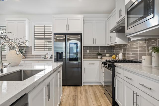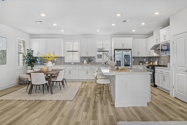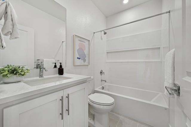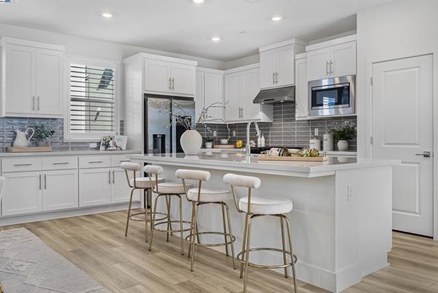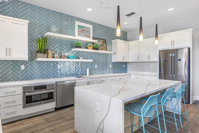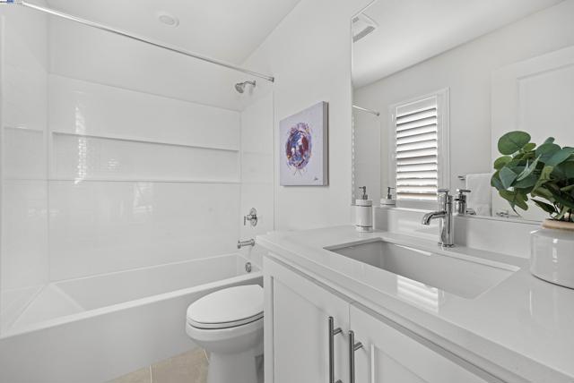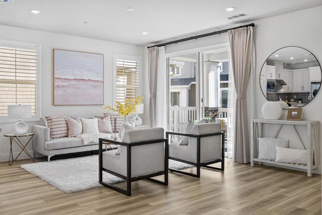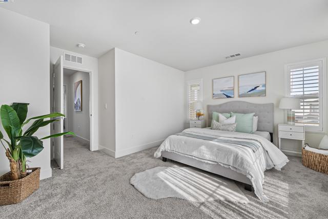 A modern home boasts a great floor plan featuring 3 spacious bedrooms and 3.5 luxurious bathrooms, each bedroom providing the ultimate privacy with its own en-suite bathroom.One bedroom and one bathroom are located on the first floor. One may enjoy the bright open spaces as natural light floods the home on a prime location.Upgraded flooring and plush carpet are throughout the home.The kitchen stands as a centerpiece, showcasing a full backsplash, quartz countertops, and sleek stainless steel appliances, seamlessly connecting to California Room—ideal for entertaining. Custom Hunter Douglas shutters and drapes add a touch of elegance to every window while the primary bedroom offers a customized closet system and tranquil en-suite. On the third floor, there are built-in desk and cabinets, perfect for a home office setup. The garage has been upgraded with walls and electric car charging station prep. The solar panel system has been fully paid-off. Bridgeway residents enjoy a host of amenities like a clubhouse, a swimming pool, dog park, and playground. Nearby National Wildlife Refuge offers open space with trails and nature to explore. The communicty is close to Meta and Tesla, among other major employers. Easy access to Dumbarton bridge and I-880.