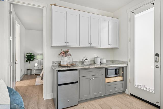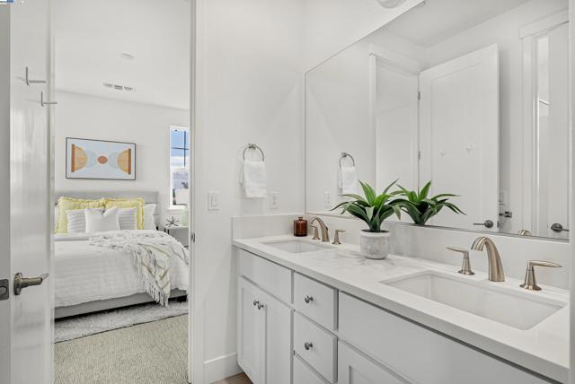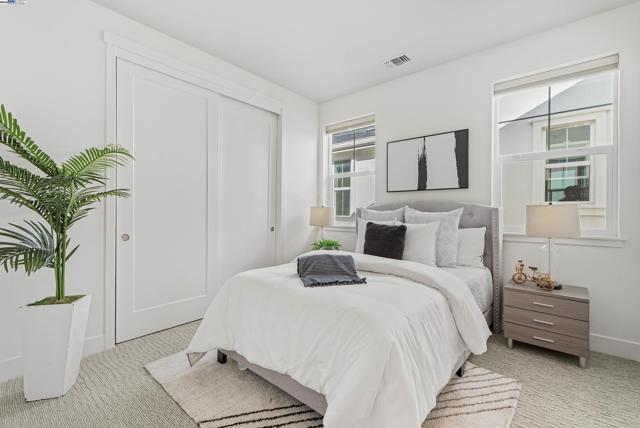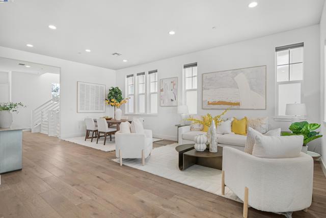 This stunning 4-bedroom, 3.5 bathroom home offers 2,410 square feet of thoughtfully designed space. The entire home boasts upgraded flooring with a mix of wood floor and carpet. The first floor presents a private suite complete with a bedroom, a full bathroom, kitchenette, and washer and dryer, perfect for guests or multi-generational living. Enjoy the convenience of a private entrance to this suite, offering independence and privacy. Ascend to the second floor, where the 10-foot high ceilings create an expansive living space, seamlessly connecting the kitchen and dining area. An upgraded open-plan living area, featuring a sophisticated kitchen with an enhanced island and stainless steel appliances. The spacious covered patio is perfect for relaxing or entertaining. The home is equipped with a water softening system. The owned solar panel system, complemented by a Tesla battery, underscores the home’s commitment to sustainability and energy efficiency. The community is close to Meta and Tesla, among other major employers. The residents enjoy a host of amenities like a park, a kid's playground, BBQ and picnic area. Nearby National Wildlife Refuge offers open space with trails and nature to explore. Easy access to Dumbarton bridge and I-880.