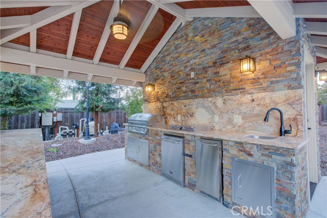 Custom brick home, 3,782 SF on 35,719 SF lot, built 1948 and fully remodeled 2014. Home features 3 bedrooms, office, sunroom, game room, family room. Formal entry to large family room with brick fireplace, recessed lighting, wood shiplap ceilings throughout the main living space and sunroom access. Custom kitchen with Hickory cabinets granite counters, stainless 5-burner cooktop, built-ins and large nook. Pantry room with laundry hook ups and tankless water heater. Flexible 2nd entrance ideal for in-law use or game room with fireplace. Office with backyard access. Primary suite with built-in makeup vanity, storage and updated tile vanity and shower. Additional bedrooms and updated hall bath with jetted tub/shower. Attached 2-car garage with laundry and built-in cabinets plus separate finished 5-car garage with 220 outlet and openers. Backyard includes 30x50 gunite pool with spa and waterfall feature. Outdoor kitchen with full upgraded bathroom, large patio, stamped concrete and mature landscape. RV parking, newer roof, 3 A/C units, dual-pane windows, gated entry. So much more upgrades and features! A must see home