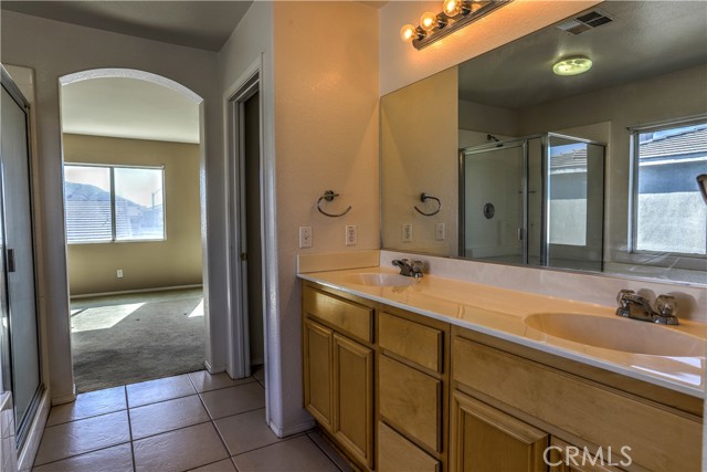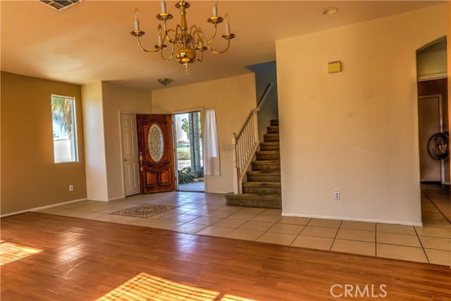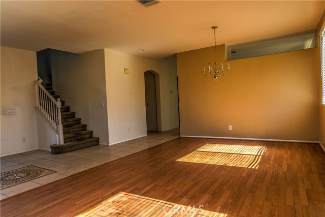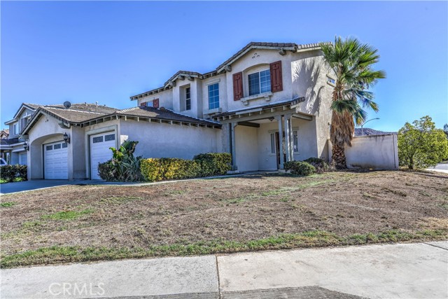 Prestigious Moreno Valley Ranch Home located just north of the Lake Perris recreational area. This 2,257 sq. ft. corner lot home features 4 bedrooms and 3 bathrooms. First floor includes 1 bathroom and laundry room. Located off the kitchen is a cozy family room with a gas fireplace and recessed media niche. The kitchen features black appliances, tile flooring and countertops, walk-in pantry, and plenty of cabinet space... Formal dining area and living room are located off the main entry. Upstairs features a loft that is centered between 4 bedrooms and a bathroom. Master bath includes dual sinks, a separate shower and large soaking tub that leads to a walk-in closet. Low tax base. Must see! Community is complete with pool, spa, gym, lake, clubhouse, paddle boats, basketball court, kid's playground, and more.