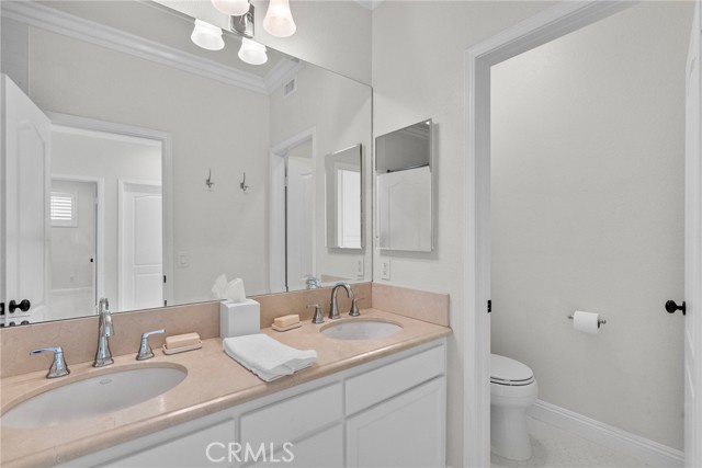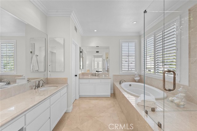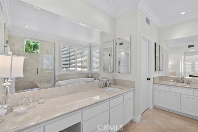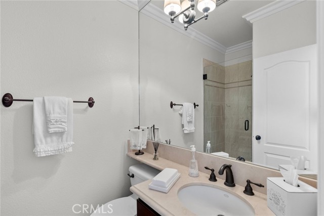 Model perfect home in the beautiful, gated Verdigris community! An epitome of luxury & sophistication combining elegance & modern design, this home is a true dream sanctuary. The private backyard is perfect for entertaining featuring a built-in spa, stamped concrete covered patio, inviting gas fireplace, and soothing waterfall, all amongst lush green landscaping. The front yard welcomes you with low maintenance turf, beautiful trees and shrubs and an inviting porch with waterfall. Step inside to the formal living room and dining room with crisp white walls, cathedral ceilings, plantation shutters throughout, gorgeous chandeliers, crown molding throughout, and neutral stone flooring. Completely remodeled light and bright kitchen features custom kitchen cabinets, 8 burner Wolfe range, built-in Sub Zero refrigerator/freezer, gorgeous stone countertops, kitchen island opens to family room with stone fireplace framed with bookcases and TV cabinet. Gorgeous custom staircase leads to loft, new carpet in hallway and bedrooms, exquisitely remodeled primary suite/primary bath with custom closets and marble flooring, upstairs laundry room with utility sink. Downstairs bedroom with new carpet, remodeled guest bath with shower. 3 car finished garage with new outdoor carpet squares, storage, work bench, full sink, and tankless water heater. 2 yr old energy efficient HVAC and transferrable solar! HOA with pool/spa, child's pool, children's playground, tennis courts, park, & BBQ's, close to award winning schools, bike paths, hiking trails, freeway access, shopping, and public transportation