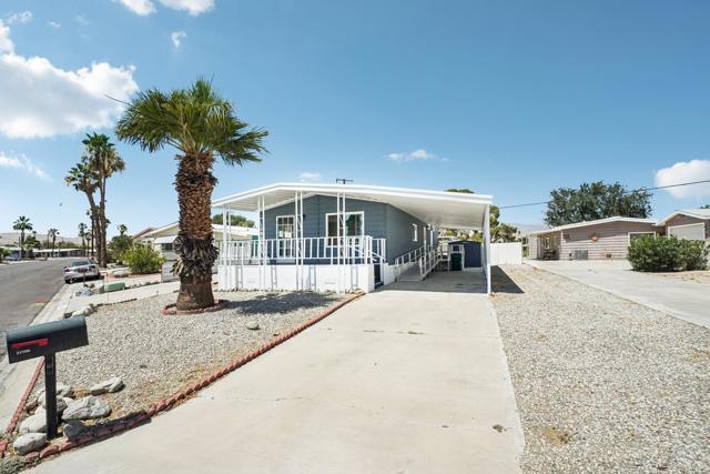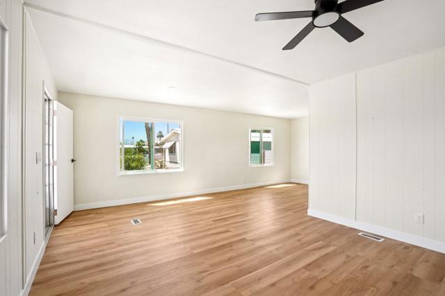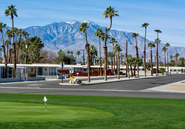 COMPLETE INTERIOR REMODEL with Beautiful Mountain Views from the large raised front patio and from the living room! Designed for today's desert lifestyle, this open-concept home offers stylish comfort and thoughtful updates throughout. The bright, open kitchen features Quartz countertops, stainless steel appliances, pantry, and a large window over the sink that fills the space with natural light. The adjoining dining area and breakfast bar seating make it perfect for everyday living or entertaining. Additional features include luxury vinyl plank flooring, energy-efficient windows, recessed lighting, and ceiling fans throughout. The spacious primary suite offers a private bath and large walk-in closet, while the guest bedroom is served by a nearby hall bath. Laundry room with direct access to carport and extra storage adds convenience. The best part -- you OWN THE LAND! Low HOA dues and a 433A Permanent Foundation allow Conventional, FHA/VA, and Reverse Mortgage Financing. Located in the active 55+ community of Tri Palm Estates & Country Club, where homeowners enjoy unlimited golf for two owners on the 18-hole Executive and 9-hole Par 3 courses, plus access to two pools and spas, tennis, pickleball, shuffleboard, putting greens, and a clubhouse with dining, social events, and recreation lounge. Conveniently close to shopping, dining, casinos, and freeway access -- and within IID for lower electric rates!