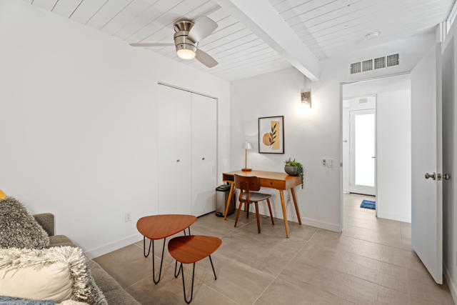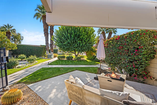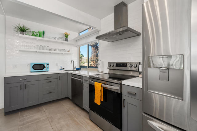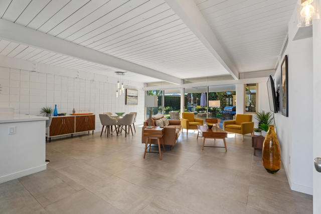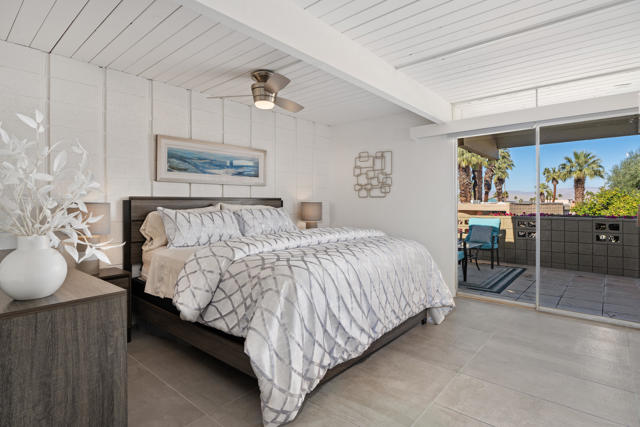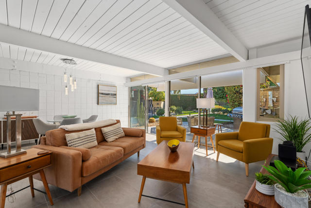 This stunning, fully remodeled 2-bedroom, 2-bath condo is located in the iconic Sandpiper development, designed by renowned architect William Krisel. Offering the perfect blend of mid-century modern charm and contemporary upgrades, this property boasts a prime interior location with breathtaking mountain views. Situated just moments from the upscale shopping, dining, and entertainment of El Paseo, this home provides the ideal combination of convenience and luxury. The spacious, south-facing back patio offers sunny outdoor living, while the elevated front patio provides additional scenic views. Inside, the home features a beautifully remodeled kitchen with a large island, quartz countertops, and stainless steel appliances. The bright and airy space is enhanced by numerous windows and sliding doors that flood the rooms with natural light, seamlessly blending the indoors with the outdoors. Additional highlights include a private indoor laundry area, luxurious bathrooms with elegant finishes, and a spacious walk-in shower in the primary suite, plus electronic blinds throughout. Its being Offered turnkey furnished, this home is ready for immediate enjoyment, making it the perfect retreat for those seeking a stylish and serene living experience in one of Palm Desert's most sought-after communities. property is located in a historically designated section making it eligible for the Mills Act which can offer property tax savings.Buyer(s) responsible to verify all information and data.