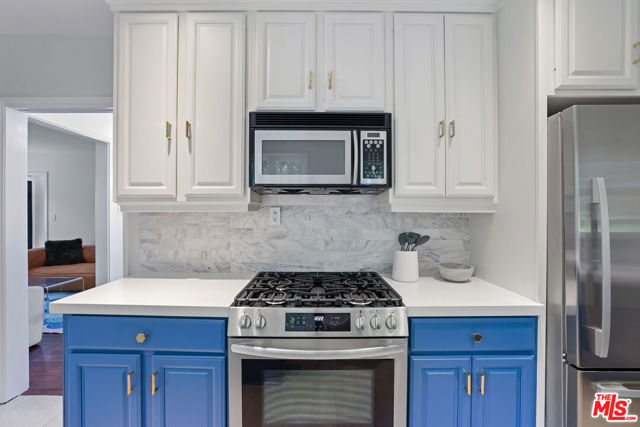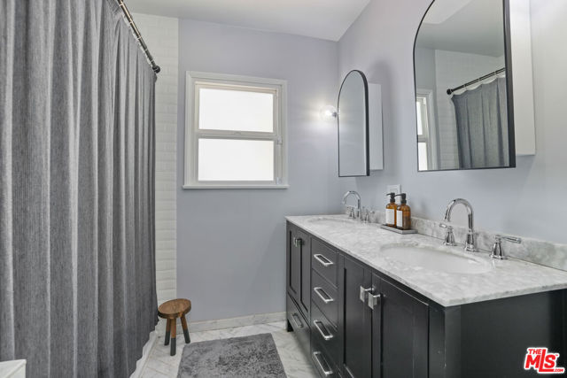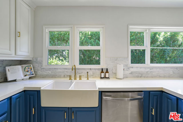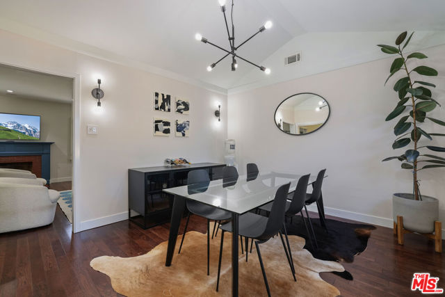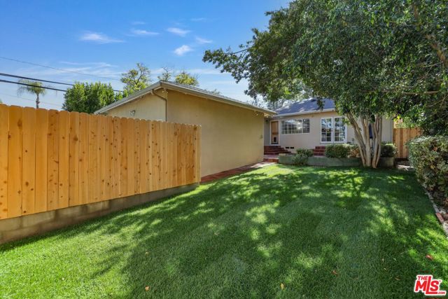 Behind tall privacy hedges and a classic white picket fence, this light-filled Sherman Oaks home blends timeless charm with modern comfort. The open living area features hardwood floors and a custom fireplace that creates a warm, inviting feel. The reimagined kitchen showcases quartz countertops, a handcrafted marble backsplash, stainless steel appliances, and a farmhouse sink. A formal dining area flows seamlessly to a private backyard with a tiled patio and mature landscaping, ideal for relaxing or entertaining.Both bedrooms are bright and airy, and the remodeled bath features dual sinks, a soaking tub, and elegant marble finishes. Recent upgrades include a new roof, new A/C system, and fresh designer touches throughout. With its ideal south-of-Ventura location near highly rated schools, local shops, and restaurants, this home is stylish, cozy and and completely move-in ready.