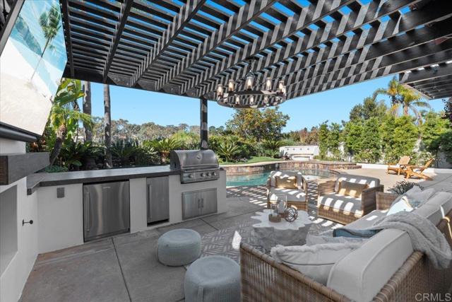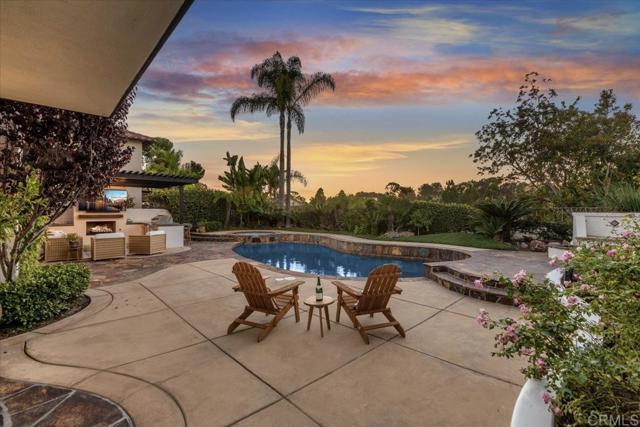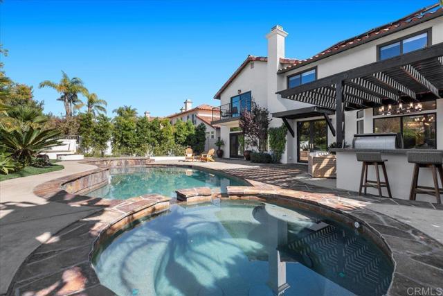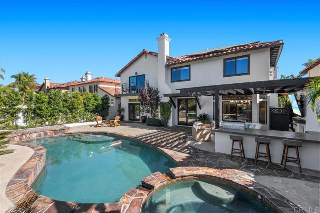 Stunning executive home situated on a quiet double cul-de-sac in the heart of Carmel Valley. Perfectly positioned on a private lot with serene skyline views, this beautifully upgraded 6-bedroom, 5-bath residence is an entertainer’s dream, complete with a sparkling POOL & SPA, and OWNED solar! The dramatic entry welcomes you with soaring ceilings and abundant natural light, leading to a functional floor plan featuring two bedrooms and two full baths on the main level—ideal for guests, an office, gym, or multi-generational living. The entertainer’s dream kitchen showcases exquisite quartzite counters and full backsplash, Sub-Zero French door refrigerator and beverage cooler, Wolf cooktop, Cove dishwasher, and designer fixtures. Wide-plank luxury vinyl flooring adds warmth and style, complemented by solid-core mahogany interior doors and fresh paint throughout. Upstairs, you’ll find four spacious bedrooms including a luxurious primary suite with marble counters, plus an additional office space and an ensuite guest room. The resort-inspired backyard was designed for year-round entertaining, complete with a newly designed poolside living room featuring outdoor fireplace, built-in Blaze grill, Sub-Zero beverage fridge and ice maker. Enjoy effortless control with a fully app/Wi-Fi-automated Aquastar Pro Poolside Tech system (pool pumps, heater, and filter all <3 years old). Additional upgrades include a 6.2kW LG solar system, 3-year-old Bosch 18-SEER HVAC, Pentair water softener, Tesla charging station, Andersen exterior doors, Wi-Fi controlled garage doors, and 3-car garage! Located within walking distance to top-rated Ashley Falls Elementary and park, and just minutes to Torrey Pines, CCA, Cathedral Catholic, scenic trails, and premier dining at Del Mar Highlands and One Paseo, 4939 Concannon Ct offers a rare combination of sophistication, privacy, and one of the best locations in Carmel Valley. Room dimensions & sq footage are approximate, per builder & assessor's record. Mello-roos is estimated. All MLS & marketing info is approximate & not guaranteed. Solar/Washer/Dryer/Fridge are included. Some interior furniture and patio furniture/accessories are negotiable.