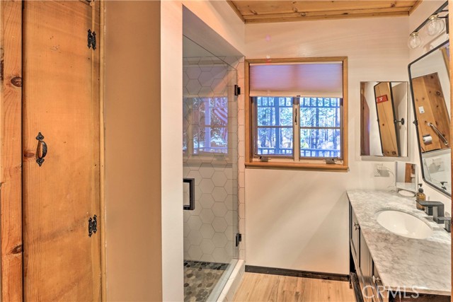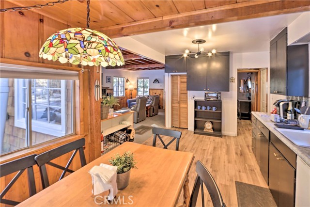 Welcome to 1069 Eagle Road, a charming Wrightwood property offering privacy, usable outdoor space, and thoughtful updates throughout. The home sits on a large lot with three driveways: a circular driveway in front for convenient access and guest parking, and a second driveway leading to the detached single-car garage. The property also provides a third driveway for dedicated RV parking, adding additional flexibility. The wrap-around front porch, complete with porch swing, offers an inviting place to relax and take in the surroundings. Inside, the main living spaces are comfortable and cozy with a wood burning fireplace. The downstairs bathroom has been recently remodeled. The layout lends itself well to everyday living or to use as a mountain getaway. The backyard is fully enclosed, offering privacy and space to enjoy the outdoors, and includes a playhouse that adds character and a family-friendly touch. This home works well as a primary residence or investment property. It has previously operated as an Airbnb, and the majority of the furniture shown in the photos will be included in the sale, making it ready for a seamless transition into either full-time living or a furnished rental. Please note: the home is currently tenant-occupied, so the interior will appear differently when touring than what is shown in the listing photos. Located near Wrightwood Village, local hiking trails, and Mountain High Resort, this property offers a blend of accessibility, mountain lifestyle, and practical usability—move-in ready and full of potential.