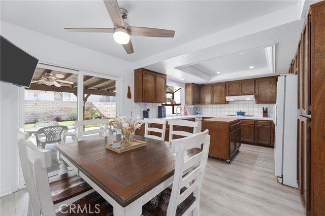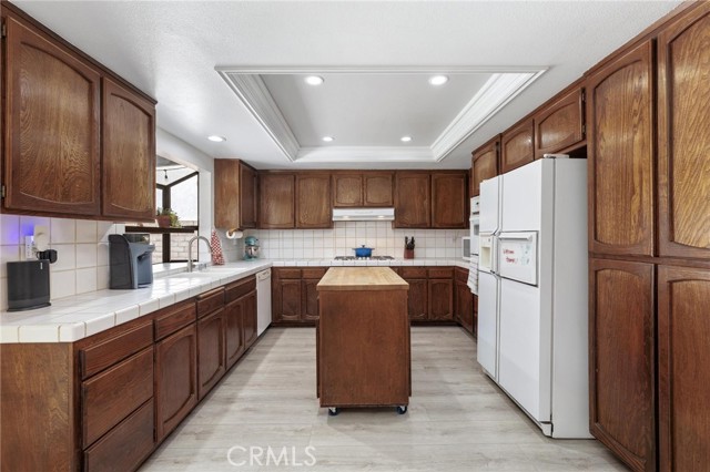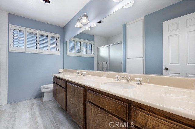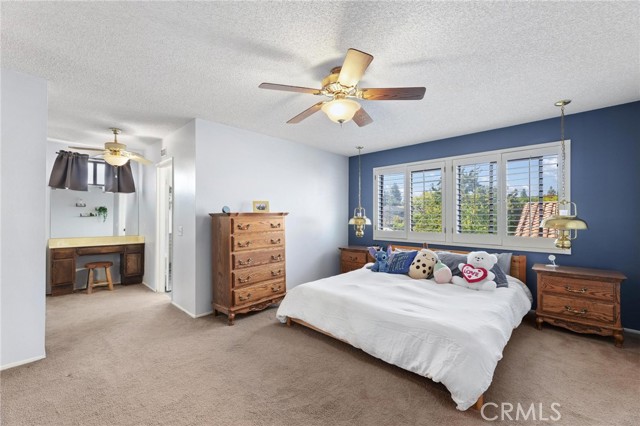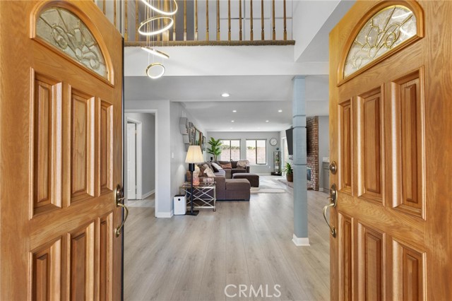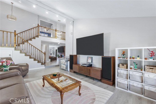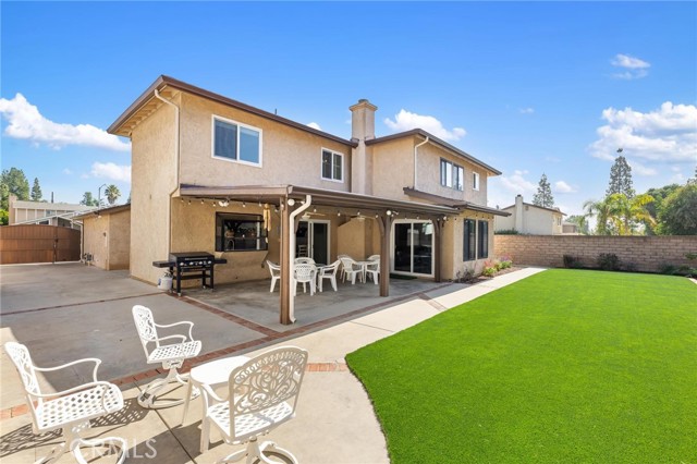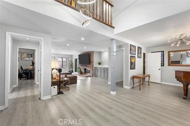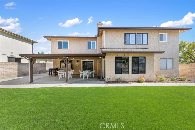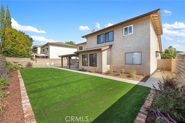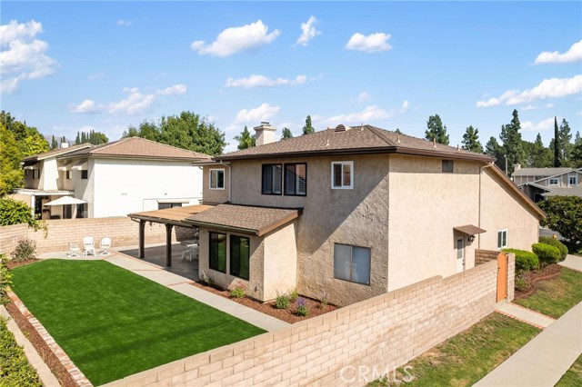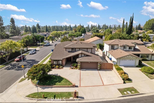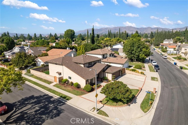 Welcome to 10721 Crebs Ave., a beautifully maintained home on a prime corner lot in one of Porter Ranch’s most desirable neighborhoods. Enjoy a sweeping circular driveway with RV parking, all just minutes from The Vineyards at Porter Ranch, convenient freeway access, scenic hiking trails, and top-rated charter schools including Beckford Elementary, Nobel Middle, and Granada Hills Charter High. This spacious residence offers 5 bedrooms and 3 bathrooms, including one bedroom and bath on the main level, with over 3,000 sq. ft. of bright, comfortable living space. Thoughtfully updated, the home features newer luxury vinyl flooring, smooth ceilings, dual-pane windows, plantation shutters, Nest thermostat, Ring doorbell, updated fascia and gutters, and central air and heat for year-round comfort. An open floor plan highlights a step-down living room with vaulted ceilings, a formal dining area, and a spacious family room complete with a brick fireplace and custom built-in dry bar with a quartz countertop. The eat-in kitchen offers abundant cabinet space, a movable center island, and sliding glass doors leading to the manicured backyard. Upstairs, you’ll find three secondary bedrooms plus a generous primary suite featuring dual closets (including one walk-in), a dressing area, and a gorgeously remodeled ensuite bath with a quartz dual-sink vanity, soaking tub, and separate shower. Entertaining is effortless in the low-maintenance backyard, enhanced with artificial turf and a covered patio—perfect for outdoor dining or relaxing with family and friends. Additional amenities include an indoor laundry room and a direct-access two-car garage with 220V-EV charging. This Northridge gem combines space, comfort, and modern updates in an unbeatable location!