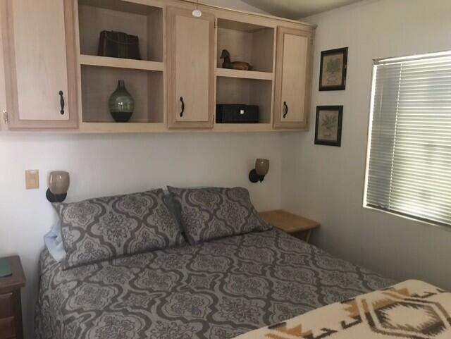 Golf Course Park Model on 6th Fairway with Awesome Views of the 6 & 7th hole with a Pond between. The View continues with the Mountains in the Background. ''L'' shaped Deck is a meeting place for Happy Hours. Auto Aluminum Shutters on Deck allow for privacy and weather. W/D in Shed. Needs a New Owner!