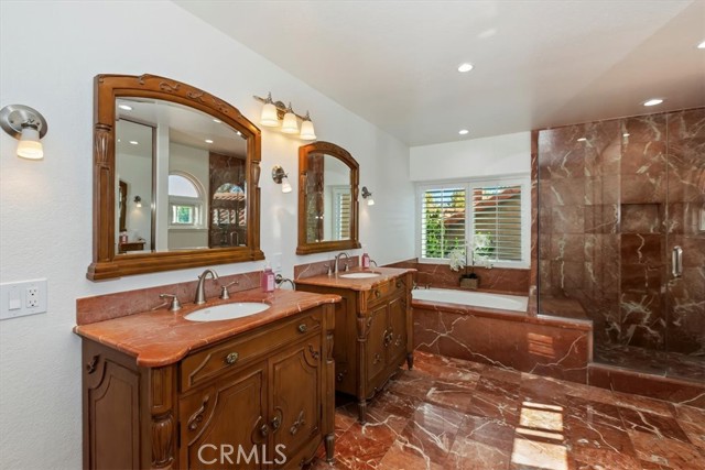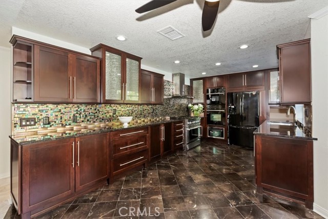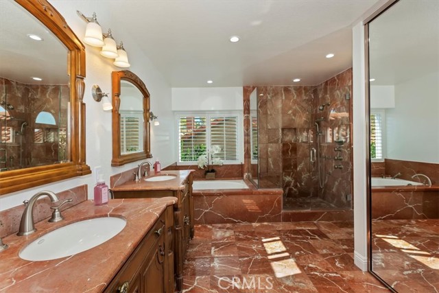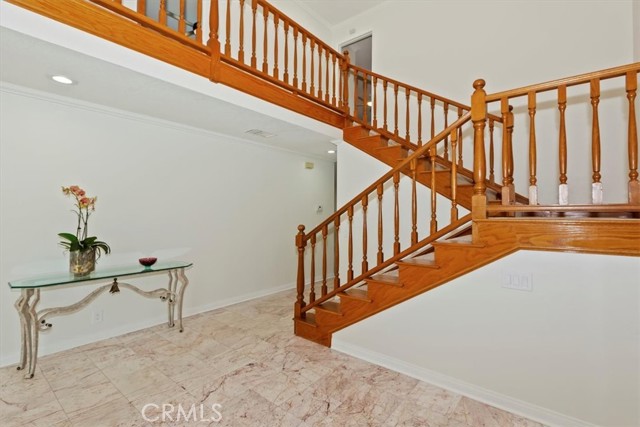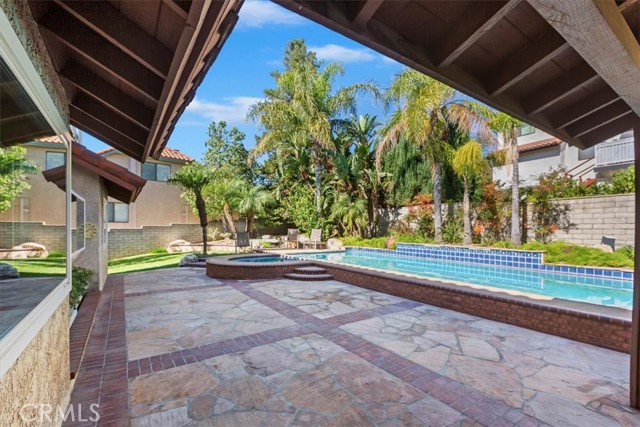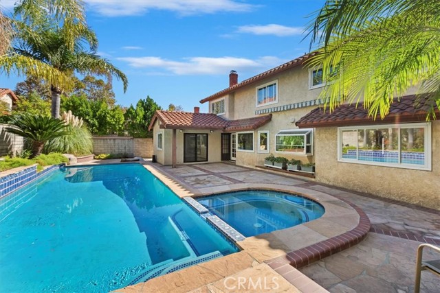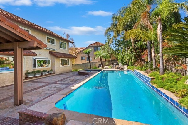 Beautiful pool home in the very sought after Compass Rose community. This home has so much to offer 4 Bedrooms + office or 5th Br Downstairs. Possibility of RV parking and or an ADU. Paid Solar System and a electric car charging outlet. You will enter through the double doors to an open foyer with high ceiling and a majestic crystal chandelier. This open floorplan offers a large media/living room of the entryway. Family room with fireplace, large custom kitchen open to the family room and overlooking the gorgeous pool and backyard. The dream kitchen with lots of counter space and cabinets with pull out drawers, a 6 burner Jenn Aire Stove, an additional built-in electric oven, microwave oven and it even has a steamer oven. Large indoor laundry with a shower and separate half bath. Upstairs offers a large primary suite with mirrored closet doors, ceiling fan and plantation shutters and the custom primary bath with step in shower and a separate large soaking tub. All secondary bedrooms with ceiling fans and plantation shutters, one BR with built-in book cases. Double pane windows, crown mounding throughout the home. New carpet in all bedrooms as well as new laminate flooring in media/living room and office/bedroom downstairs, marble flooring in Family Rm, Entry and Kitchen. This home was also just painted in neutral colors throughout. Did I mention has a 3 zone HVAC system and recessed lighting in living areas. This home is located near top rated schools, shopping and easy access to Freeways.