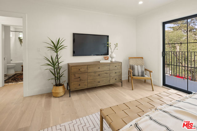 Located in the highly desired Westside Village neighborhood within an award-winning school district, this newly reimagined four-bedroom, three-and-a-half-bath residence captures the luxury of modern refinement. Perched gracefully above the street, every element of the complete renovation has been meticulously executed, achieving a perfect balance of warmth, restraint, and architectural cohesion.Expansive windows and skylights draw in natural light throughout the day, framing serene hillside and treetop views from nearly every vantage point. The open-concept great room unfolds with effortless harmony, where a gourmet kitchen, anchored by a sculptural island, overlooks a sunlit living room that extends through glass doors to a layered series of outdoor spaces, creating a seamless dialogue between indoors and out.Two bedrooms open to private balconies with tranquil views, while a dedicated office offers a quiet, light-filled workspace. The newly converted one-bedroom ADU enhances the property's versatility ideal for guests, extended family, or additional income and is thoughtfully integrated within the home's architectural narrative.Private, secure, and serenely tucked away, this residence offers the calm of a hillside retreat within easy reach of Los Angeles' most celebrated dining, shopping, and entertainment enclaves, a rare synthesis of light, landscape, and design intent.
