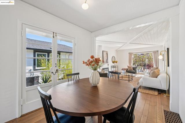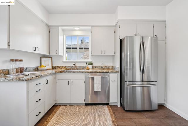 Welcome to 84 Begier, a spacious and thoughtfully updated 1938 bungalow tucked on a generous lot in one of San Leandro’s most convenient neighborhoods, Creekside. Behind the long driveway, you’ll find a detached garage and large shed offering abundant storage and flexible possibilities. Inside, the home blends vintage character with fresh updates; decorative tile-accented window sills, random plank hardwood floors, and a cozy electric fireplace add warmth to the inviting living room. The kitchen features a charming dining nook, refreshed finishes, and an adjacent laundry area with a utility sink & backyard access. The renovated bathroom feels crisp & modern, while the original brick side porch with its classic doors adds a storybook touch. Out back, you’ll fall in love with the lush, private yard; anchored by a stunning fig tree, a mature apple tree, & layered landscaping that creates distinct spaces for dining, lounging, and play. The detached garage has been enhanced with insulated walls, recessed lighting, & a side door opening to the garden, making it ideal for use as a home office, guest suite, or studio. Located moments from San Leandro favorites like Bluebird Pizzeria, Tio’s Mediterranean Grill, and the upcoming Sprouts Market at Centro Callan.