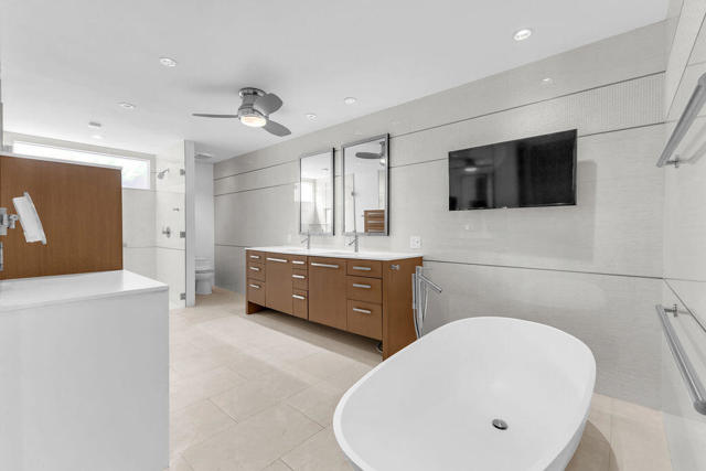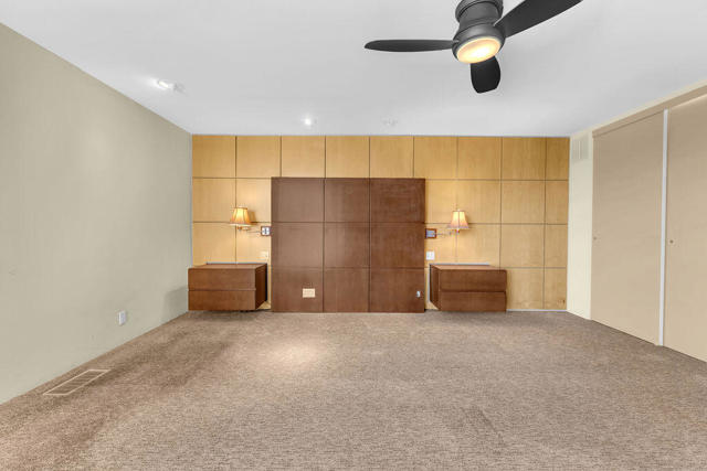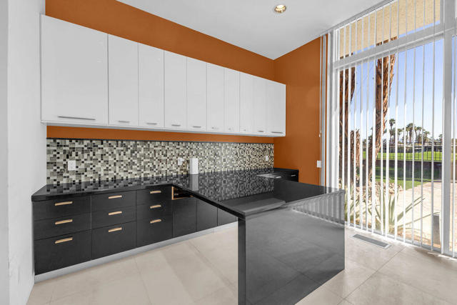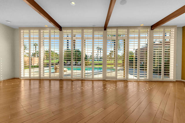 There's a certain stillness to Tamarisk West--a mid-century enclave where the hum of the desert softens into quiet, and sunlight moves through walls of glass like a living thing. Along the fairways of the storied Tamarisk Country Club, this 3,100-square-foot residence captures that sense of calm elegance that defines life in Rancho Mirage.Inside, light and landscape take center stage. Floor-to-ceiling windows and sliders erase the boundary between indoors and out, drawing the eye toward an ever-changing canvas of green fairways and mountain silhouettes. In the living room, a step-down wet bar nods to the home's architectural heritage--an invitation to linger, to pour, to enjoy the simple luxury of good company and open space.The kitchen feels generous and grounded, blending professional-grade appliances with effortless functionality--crafted for the way we live now, where cooking, conversation, and connection flow together. Each of the three bedrooms is a private haven with its own en suite bath and walk-in closet, while a dedicated office offers space to create, to focus, or simply to pause.Beyond the glass, the desert's rhythm continues--a private pool shimmering beneath a vast blue sky, framed by curated landscaping and the quiet expanse of the Tamarisk course beyond. Solar power lends the home a thoughtful touch of sustainability, marrying modern intention with timeless ease.At Tamarisk West, life unfolds without hurry. The architecture, the light, and the landscape all conspire toward one idea: serenity made visible.