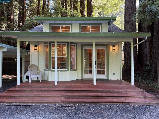 Discover the ultimate redwood retreat with this enchanting A-frame property, offering serene creekside living and a rare, separate artist studio in the heart of Cazadero. From the moment you arrive, the grounds captivate the senses. A suspended deck offers a front-row seat to the sights and sounds of the rushing creek, while a private redwood grove at the corner of the lot provides a perfect spot for a hammock on a sunny day. A fenced garden space is ready for your vegetables and spring bulbs, and the property even yields apples and plums in wet years. The main A-frame home features a warm living room anchored by a wood stove, a well-appointed kitchen, and two upstairs rooms where you can watch moonlight filter through the skylights. The detached artist studio is a significant bonus, offering a versatile space with a full bath and closet—ideal for guests, hobbies, or a remote workspace. This prime location blends peaceful seclusion with convenient access to local treasures. Explore the coast at Pomo Canyon and Jenner Headlands, enjoy the shops and restaurants of Duncan Mills and Cape Fear, or simply take in all Cazadero has to offer. With ample parking and space to entertain, this property is a true paradise. Don't miss this incredible Cazadero gem. Welcome home!