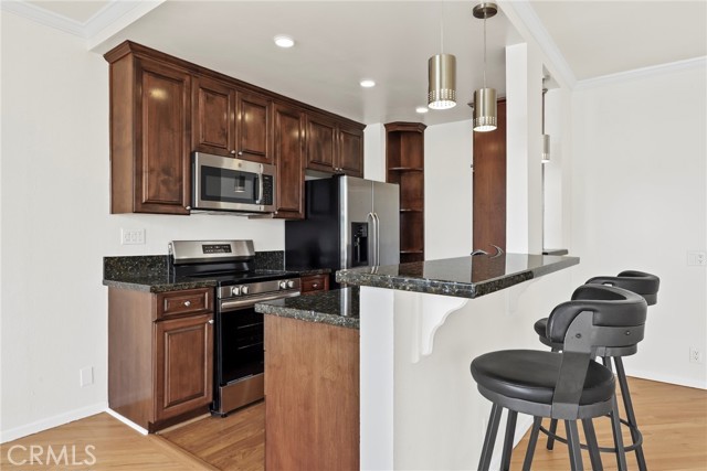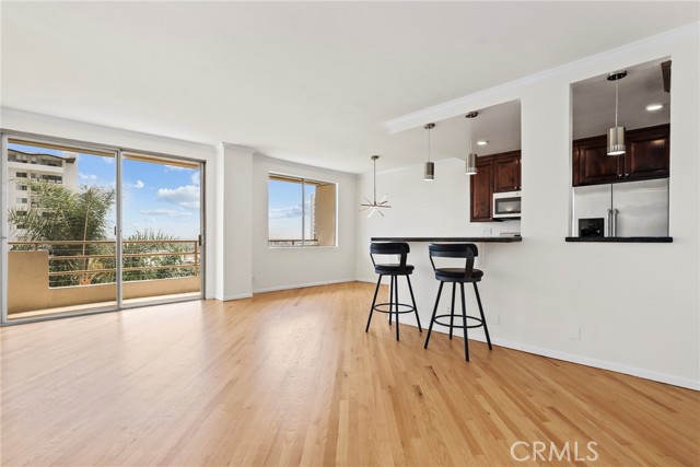 Proudly introducing this stunning 1-bedroom, 1-bathroom penthouse condo offering 731 sq ft of upgraded living space and panoramic skyline views, including the iconic Downtown Los Angeles cityscape. Located on the TOP FLOOR of the coveted Park Wellington, this beautifully updated unit combines luxury, comfort, and location in one incredible package. Step inside to find hardwood floors, a remodeled open-concept kitchen with granite countertops, stainless steel appliances, and a breakfast bar perfect for casual dining or entertaining. The spacious living area flows seamlessly to a large private balcony, ideal for soaking in the city lights and skyline sunsets. The bedroom features ample natural light, city views, and a generous walk-in closet. The remodeled bathroom boasts travertine tile, an elegant vanity, and a roomy walk-in shower—all freshly painted and move-in ready. Park Wellington is one of West Hollywood's premier full-service, resort-style communities, offering: 24-hour doorman/concierge and security, Heated year-round pool with lounge areas, Pergola-covered spa and sauna, North/south tennis court, Fitness center, Lush grounds and a professionally managed HOA. Just moments away from the best of West Hollywood and the Sunset Strip—including world-class shopping, dining, and nightlife!!