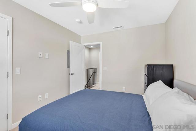 Fully rebuilt in 2022, this stunning 2-bedroom, 1-bathroom home offers modern finishes and thoughtful upgrades throughout. Enjoy new plumbing, wiring, HVAC, drywall, and dual-pane windows for efficiency and comfort. Engineered wood flooring enhances the main level, with carpet upstairs for a cozy touch. The upgraded kitchen and bathroom feature modern cabinetry and countertops, and the primary bedroom includes a walk-in closet. Convenient built-in USB chargers in electrical. Outdoor living shines with a spacious covered patio featuring concrete, turf, and extra storage space. The property also offers a 2-car tandem carport with additional storage. The Carefree community boasts lush landscaping, a sparkling pool and spa, and a great location close to schools, shopping, dining, and Mission Trails Regional Park. Move-in ready and rebuilt with quality craftsmanship—don’t miss this exceptional opportunity!