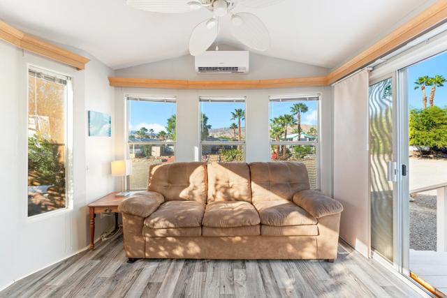 Welcome to The Sands RV & Golf Resort!Discover comfort, style, and resort living in this 2008 one-bedroom, one-bath park model--one of the newer homes in the community and beautifully maintained. Nestled along the wash for added privacy and natural desert views, this home captures the essence of easy desert living.Inside, you'll find an open and bright floor plan with large windows that fill the space with natural light. The living area offers scenic views and a relaxing atmosphere, while the kitchen provides plenty of cabinet storage, ample counter space, and full-size appliances. The bedroom features built-in cabinetry, mirrored closets, and added shelving for organization. The bathroom includes a walk-in shower and extra storage space, creating a practical and functional layout.Enjoy year-round comfort with the energy-efficient mini-split system, keeping the home cool through the summer and warm in the winter. Outside, unwind under the covered porch and take in the peaceful desert scenery surrounded by mature landscaping.Living at The Sands RV & Golf Resort means access to resort-style amenities including a 9-hole golf course, multiple pools and spas, tennis and pickleball courts, horseshoe pits, shuffleboard, a fitness center, and a clubhouse with social events and activities. Water and trash are included in the monthly space rent for added convenience.Perfect as a seasonal escape, full-time residence, or investment opportunity, this home offers the ideal balance of affordability, comfort, and lifestyle.Motivated seller--contact today to schedule your private showing.