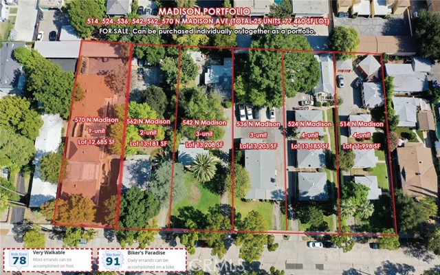 True Value-add 9 units several blocks north of Old Town Pasadena, Excellent Unit Mix, Large 12,685 SF Lot, 9 carport parking, Excellent going-in CAP Rate with High Proforma CAP Rate. 570 N Madison Ave, a prime value add 9-unit apartment in the City of Pasadena. Situated only several blocks north of Old Town Pasadena, 2 blocks west of Los Robles Ave, and just within walking distance of many dining, shopping, and other attractions in Pasadena. It is situated on a quiet residential street surrounded by single family houses. This property is being sold together with 5 adjacent buildings to its south that are own by same seller – can be purchased together or individually (514 N Madison, 526 N Madison, 536 N Madison, 542 N Madison, and 562 N Madison). The property is a garden style walk-up 2 story apartment with excellent curb appeal. It offers superb unit mix with two (2) x 3bed+1bath and seven (7) x 2bed+1bath units, making it an easy unit mix to rent out. The property was built in 1963, has a total of ±7,222 SF building size and is situated on a large ±12,685 SF lot. Based on the building size, each unit average about 802SF/unit (buyer to verify). All the ground floor units have private patio (buyer to verify). Approximately 3 units have been updated with luxury wood flooring, updated kitchen (quartz countertops, new kitchen cabinet), and updated bathroom. Parking is provided via 9 carports (3 on the side and 6 in the back). There is no living space above carports which means the property does not need any soft story retrofit. Each unit is separately metered for electricity and gas. The property has a shared laundry room. The property is in the highly desirable area of Pasadena just several blocks north of Old Town Pasadena. It is situated on a quiet tree-lined street and within minutes from the Gold Line and numerous additional shopping and dining options on Colorado Boulevard and Lake Avenue. Near Pasadena’s historic City Hall, it sits just minutes from the California Institute of Technology, Pasadena Community College, and the 210 and 110 Freeways, offering ease of access to neighboring cities and entertainment destinations in the region. Historic Old Pasadena’s charming storefronts house 200 shops plus a wide array of restaurants and night spots. The Pasadena Convention Center, Pacific Asia Museum, the historic Tournament of Roses house, and the Norton Simon Museum are minutes away.
