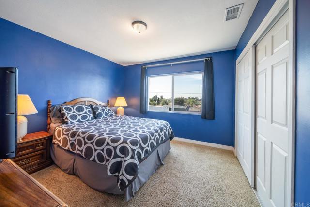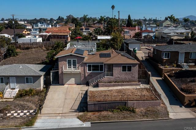 Discover space and flexibility in this 4 bedroom, 3 bathroom home with paid solar and incredible outdoor living. The layout offers versatility with two bedrooms featuring en-suite bathrooms, including an upstairs primary with a balcony. The light-filled main living area opens to a spacious kitchen and dining space, making everyday living and entertaining easy. An extra perk, air conditioning for comfort! Storage is abundant throughout with tons of closet space. Step outside to multiple outdoor zones with 2 large covered patio areas, expansive turf yard, and mature fruit trees. The upper deck offers 2 separate places to watch the sunset and panoramic views of San Diego. Endless possibilities with this lot which is zoned R-2! The garage includes a workspace and the large driveway for cars, RV, or boat. Refrigerator, washer, and dryer are included. Convenient location near schools, parks, shopping, and dining, with quick access to 805 and 54. Minutes to Downtown, Coronado, South Bay, and the 32nd Street Naval Base. No HOA.