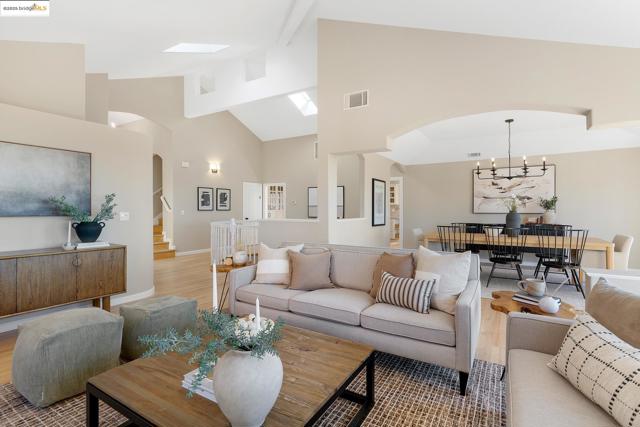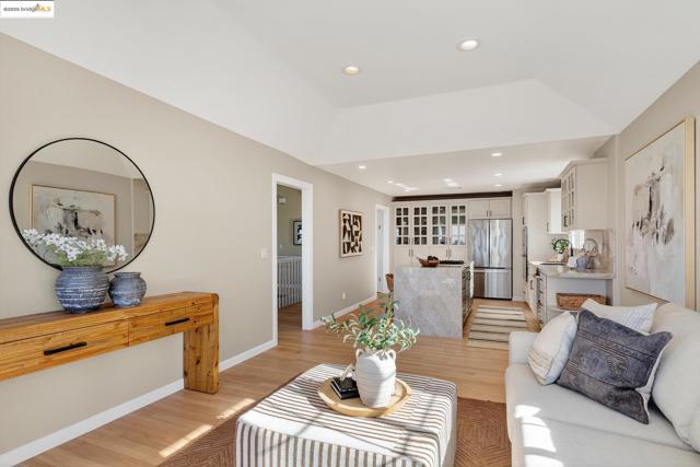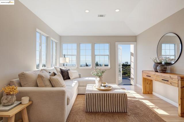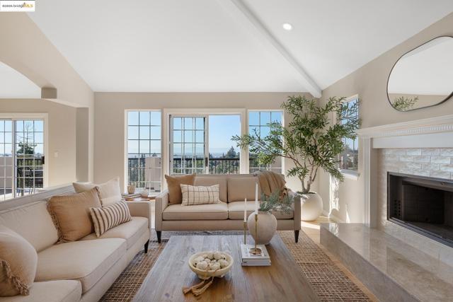 Stunning Bay View Home with Mediterranean Elegance. Experience breathtaking Bay views from this exquisitely updated residence showcasing serene Mediterranean details throughout. This exceptional property features soaring ceilings that create an airy, spacious atmosphere flooded with natural light. The chef-inspired kitchen is a showstopper with stunning quartzite island, countertops, and backsplash—designed for both functionality and style. The home offers four spacious bedrooms and three full bathrooms. Cozy up by one of two fireplaces—one in the living room and another in the primary bedroom. Two expansive decks extend your living space, perfect for entertaining or relaxing while enjoying spectacular views. The basement provides abundant storage, and a two-car garage offers additional parking. Situated in a prime central location, you'll enjoy easy access to shopping, dining, and entertainment. Commuters will appreciate convenient freeway access, while nature enthusiasts will love the proximity to majestic redwood groves and scenic hiking trails. This rare combination of luxury finishes, spectacular views, and unbeatable location creates an exceptional offering. Don't miss your chance to own this Mediterranean-inspired gem where everyday living feels like a vacation.
