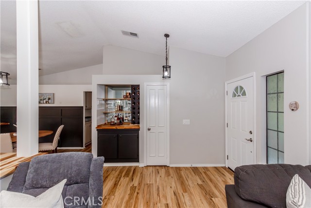 **Fully Upgraded Temecula Single-Story Pool Home**Welcome to effortless living in this beautifully upgraded single-story home, perfectly situated in the sought-after Rainbow Canyon Villages & Estates community. From the moment you arrive, the curb appeal sets the tone, lush landscaping and a welcoming entry invite you inside to discover a home that blends modern comfort with timeless charm. Step into the bright and open living area where natural light pours through a charming window, highlighting the seamless flow between the living room, dining area. The custom-built serving bar connects these spaces perfectly, creating an ideal setup for entertaining and everyday living. A stylish updated wet bar adds a touch of sophistication and functionality. The heart of the home, the newly remodeled kitchen is a dream for any cook, featuring a farmhouse sink, quartz countertops with a custom backsplash that adds color and personality, sleek newer cabinets with ample storage, and newer stainless steel appliances. Durable vinyl laminate plank flooring carries throughout the kitchen, dining room, and hallway, creating a cohesive modern aesthetic. The primary suite is a peaceful retreat with its own sliding-door access to the backyard patio, dual vanities, and a shower-tub combo. The flexible bonus room with a huge walk-in closet can easily serve as a fifth bedroom, den, or home office adapting perfectly to your lifestyle needs. Step outside and experience the showstopper: a spacious backyard oasis complete with a sparkling pool, mature fruit trees (apricot, apple, and lemon), and a freshly planted lawn area, ideal for play, sports, or Fido to roam. The side yard offers the perfect setup for a home garden or additional outdoor projects. Lovely mountain views from several directions and tree lined streets wrap this beautiful home in a perfect bow. Lets not forget the HOA maintained walking trails just a few doors down! All of this is just minutes from shopping, dining, entertainment, Temecula Creek Golf Course, and Wine Country, with quick access to the I-15 freeway and located within the boundaries of the top-rated Great Oak High School.