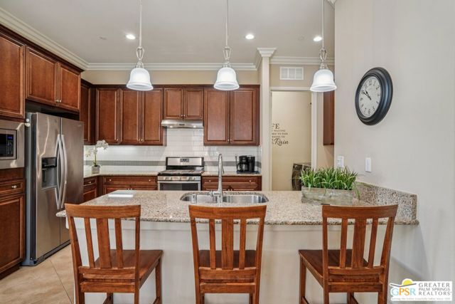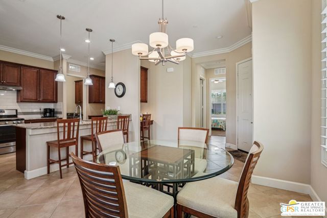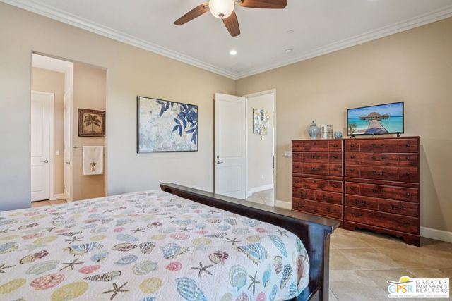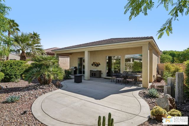 Leave the winter weather behind and enjoy the Sun Filled Days of Sun City Shadow Hills! This Turnkey Furnished Embark Model shows off a smart open floor plan with bedrooms at opposite ends- perfect for 2 couples, guests, caretaker or family visitors. The kitchen is a delight for any chef with stainless steel appliances, tall custom cabinetry, abundant granite counters, convenient pantry, and a breakfast bar. A separate inside laundry room with full cabinetry is adjacent. Crown molding adorns the tall ceilings in every room. The light and bright Great Room is flooded with natural sunlight. A Glass Slider extends space to the very private rear yard. An oversized patio cover provides comfort and shade. Easy-care landscaping, interesting desert botanical specimens, and additional extended decking complete the rear garden. The spacious Primary Suite features a bath with a dual vanity, separate water closet, and a spacious clothes closet. An additional glass slider from the Primary Suite transitions the indoor space seamlessly to the exterior space. Ceiling Fans throughout add to comfort. Plantation Shutters create sophistication and charm. The Direct Entry Garage is 22 feet deep. It's a lifestyle, not just a home. Amenites include countless social clubs, classes, golf, tennis, pickle ball, bocce ball, fitness centers, billiards, a library, spas, and several pools. Residentsnts have access to 2 golf courses. One is a challenging 18-hole Par 3 golf course, designed by Lee Schmidt and Brian Curley.