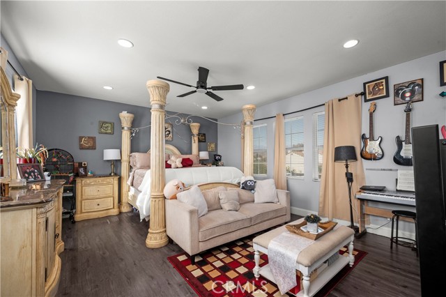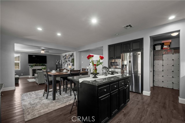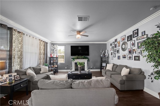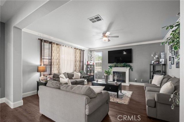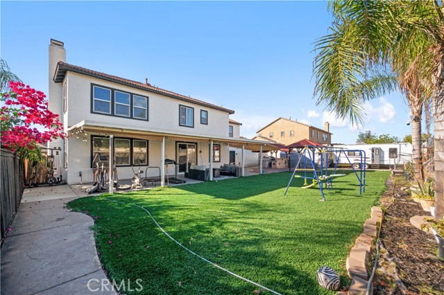 Welcome to your dream home in the heart of Moreno Valley! This stunning 5-bedroom, 3-bathroom residence perfectly combines space, comfort, and style. As you enter, you’re greeted by a beautifully maintained entrance and a private office to your right—ideal for working from home. The family room with a cozy fireplace and the formal dining area set the stage for gatherings and memorable moments. The gourmet kitchen offers granite countertops, an island and abundant cabinetry—a perfect setup for any home chef. A sliding glass door leads to the backyard patio area, great for outdoor dining and entertaining. The home’s design features a small cathedral ceiling, creating an open, airy feel throughout. For added convenience, there’s a downstairs bedroom and full bathroom, ideal for guests or multigenerational living. Upstairs, the spacious bedrooms offer plenty of comfort, including a luxurious primary suite with a walk-in closet and a beautifully updated ensuite bath. Enjoy year-round comfort with central A/C and modern updates throughout, including new lighting fixtures and vinyl flooring. Step outside to your private backyard oasis, complete with a gazebo wired for entertainment—perfect for gatherings with family and friends. A 3-car garage and extra-wide driveway provide ample parking for vehicles, an RV, or recreational toys. Conveniently located near schools, shopping centers, parks, and major freeways, this exceptional Moreno Valley home offers both tranquility and accessibility. Come fall in love with the space, charm, and comfort this home has to offer!