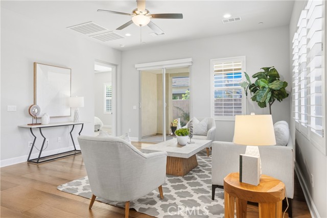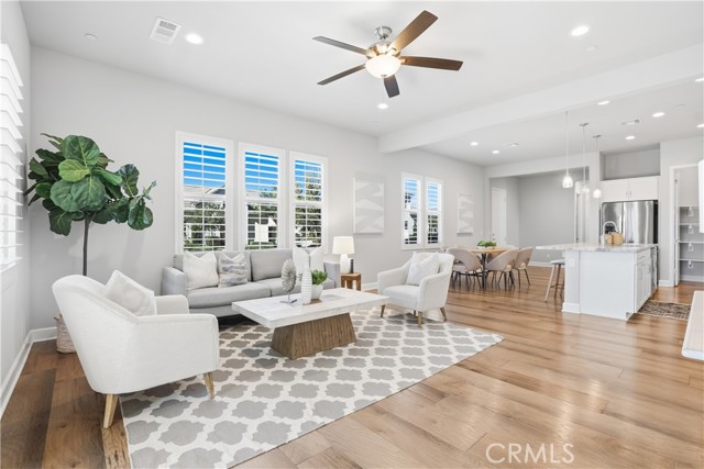 Welcome to your stunning residence in the exclusive Vida neighborhood, a premier 55+ Gavilan community within the award-winning Rancho Mission Viejo. This home radiates elegance and comfort, featuring a thoughtfully crafted open floor plan that effortlessly integrates the dining space, living room, and a generous kitchen island ideal for hosting and making cherished memories. The true wow factor of this home lies in the expansive feel of the great room. The sliding glass doors seamlessly blend indoor and outdoor spaces, creating a flawless transition that amplifies the sense of openness. Every element, from the upgraded leather-textured countertops in the kitchen to the plantation shutters and recessed lighting, reflects outstanding craftsmanship. Notable features include fully paid-off solar panels, custom built-ins, a spacious walk-in pantry, storage cabinets and racks in the garage, epoxy, ceiling fans, crown molding, plantation shutters, sliding barn door in primary, a primary walk-in closet, and a luxurious walk-in shower. To complete the package, a nearby trail offers a scenic 30-minute electric bike ride straight to Doheny Beach. Beyond the home, you’ll enjoy a vibrant, resort-style lifestyle with exclusive access to private Gavilan 55+ amenities — including The Perch, The Hacienda, The Outlook, The BBQ Barn, and The Getaway. Stay active and connected with a state-of-the-art fitness center, saltwater pool, spa, cabanas, bocce ball courts, yoga studio, fire pits, and social lounges. And when the grandkids visit? You’ll have full access to Rancho Mission Viejo’s award-winning all-ages amenities, arcade, community farms, fitness centers, indoor basketball gym, putting green, Sports park, tennis and pickleball courts, parks, and events that make this community unlike any other. Experience 147 Luneta Ln in Rancho Mission Viejo today.