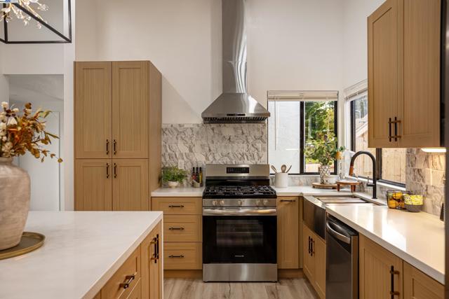 Fully Renovated Modern Home on a Quiet Cul-de-Sac Beautifully renovated 3-bedroom, 2-bath home offering over 1,300 sq. ft. of stylish living space. Features include a custom fireplace with built-in wood shelving, spacious kitchen with a large quartz island, European tile backsplash, and light vinyl flooring throughout. Garage is finished, perfect for an office or at-home gym. Master has his and her closets, a beautiful crystal mounted fan and a big barn door leading into the en-suite bathroom. The primary suite boasts a rainfall shower and quartz walls, while the open living area connects to a private courtyard—perfect for relaxing or stargazing. Enjoy peace of mind with new plumbing, electrical, HVAC and roof—essentially a brand-new home. The huge backyard backs to Rodeo Creek and a walking trail, combining nature with convenience. Located near Highways 4 and 80, ideal for commuters. Modern design, cohesive finishes, and abundant natural light make this home move-in ready and truly special.