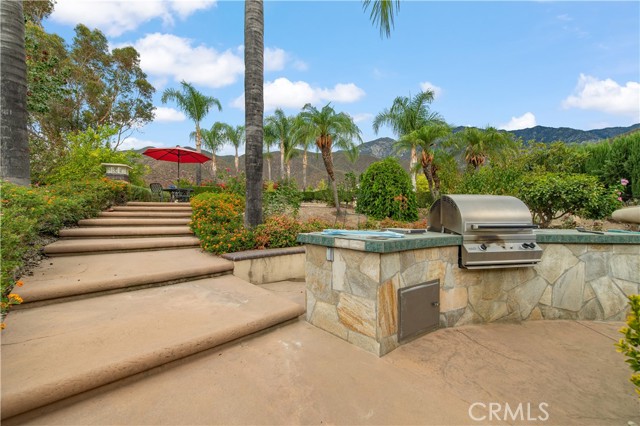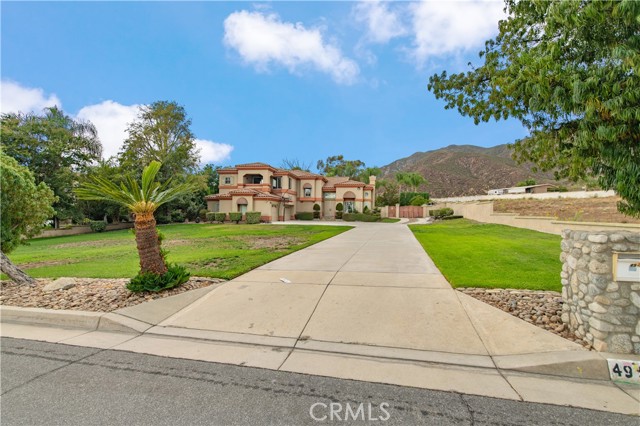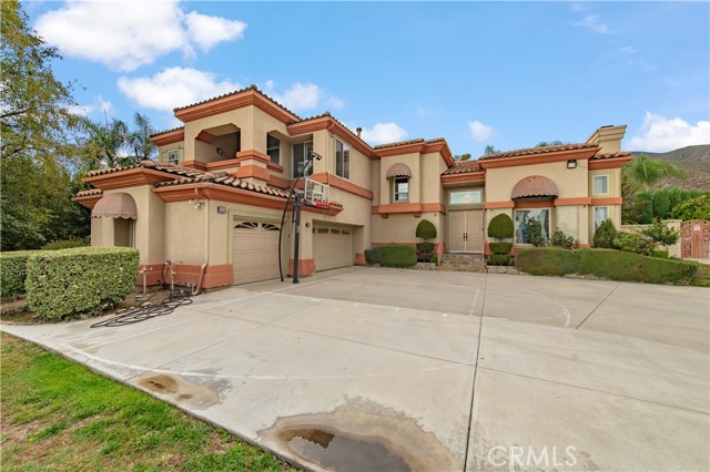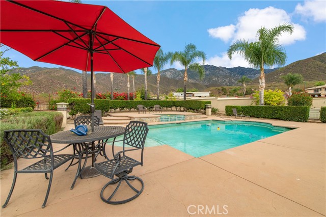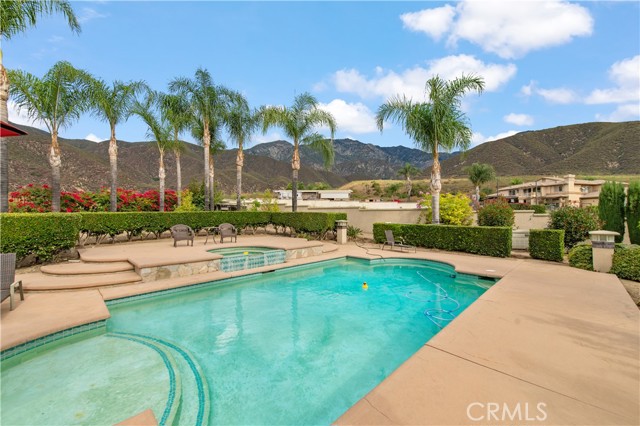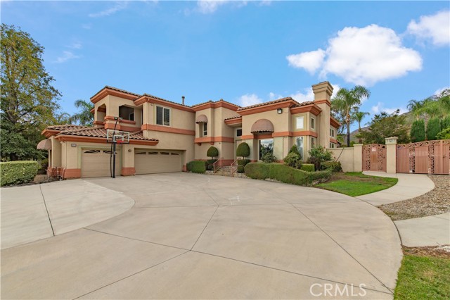 Tuscan-Inspired Luxury Estate with Pool, Spa & Panoramic Views Elegant 6-bedroom 4.5-bathroom semi-custom estate nestled below the Angeles Oak foothills on over an acre of privacy and beauty. Blending authentic Tuscan charm with modern luxury, this home showcases breathtaking sunset and mountain views. The courtyard with fountains, mature landscaping, and mini vineyard create a serene retreat. Inside, enjoy soaring ceilings, terracotta-style floors, and ungraded chef’s kitchen with marble counters, oversized island, and Sub-Zero refrigerator. The step-down living room with fireplace and custom bar is perfect for entertaining, while the primary suite offers a private veranda, fireplace, and spa-inspired bath. Outdoors, a resort-style pool and spa, BBQ island, multi-level patios, 3-car garage with workshop, RV parking, and private trail access. A true California-Tuscan masterpiece!