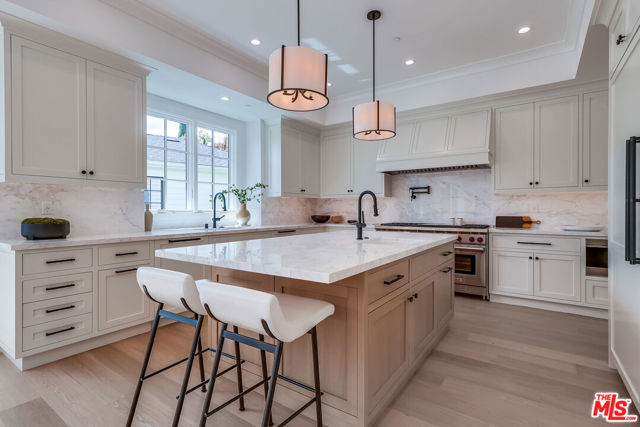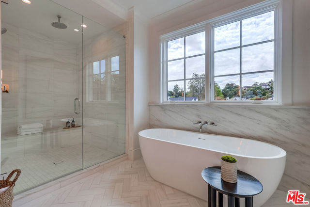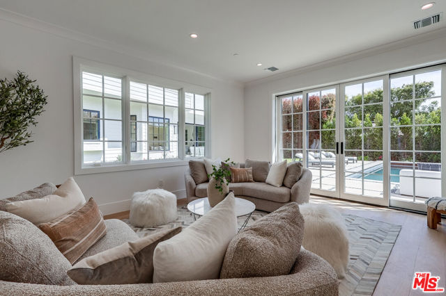 Stunning 2025 brand new construction home in Brentwood. A true masterpiece, this home is ideally located on a quiet, level and subdued stretch of Bundy Drive a mere 3 1/2 blocks north of Sunset with easy ingress and egress to the 405, Westwood, Century City, Santa Monica, LAX, DTLA and the Valley. Just an incredible location! Abundant natural light, high ceilings and wide hallways grace this inviting and welcoming floor plan. Don't miss the high impact circular staircase with spectacular central ceiling skylight and floor to ceiling paneling! There are 7 Bedrooms, 10 Baths, family room, wood paneled office, formal dining room, breakfast nook, both walk-in and butler's pantry. The main floor features en suite bedroom, mud room, designer kitchen with 6-burner Wolf range and Subzero side-by-side refrigerator and freezer. The bright kitchen flows into the family room which features multi-paneled sliding glass doors opening to the patio and expansive grassy yard, pool and spa. Luxurious upper level primary suite with fireplace, outdoor balcony, coffee bar and spa-like bath with dual walk-in closets and separate commode rooms. There are three additional upstairs en suite bedrooms and a secondary laundry room. Finished basement with home theater, gym, sauna, game room with full bar, sink and appliances, en suite bedroom and main laundry room. There is an elevator to all floors. The home has a separate 750 sq ft ADU with its own address, complete with kitchen, bath, bedroom, multi panel pocket door and outdoor shower. Serenity and tranquility abound in this perfect and majestic new construction home located in the heart of Brentwood.