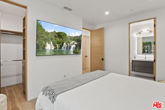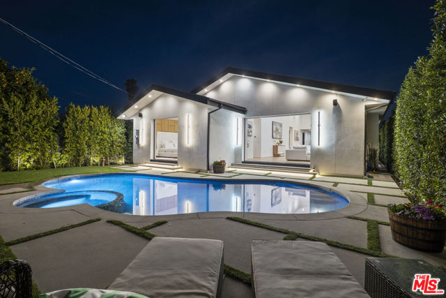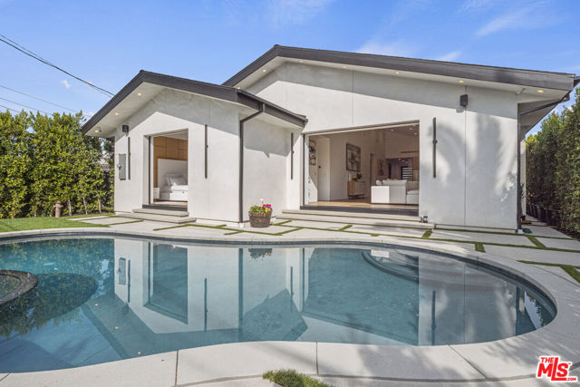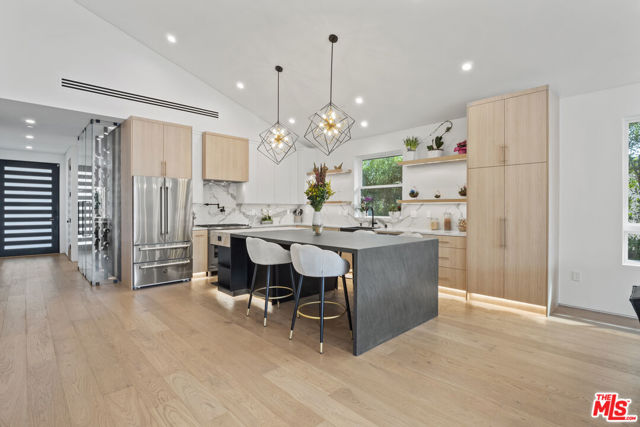 Introducing North Hollywood's latest gem, a stunning modern home situated just moments away from the bustling studios, the NoHo Arts District, and the brand-new NoHo West shopping center. With its contemporary design and abundance of modern amenities, this newly developed home is a true statement-maker. As you step inside, you'll immediately notice the airy open floor plan with high ceilings and a plethora of smart home features. The main living space is expansive and boasts impressive 15ft vaulted ceilings that create a grand ambiance. The designer chef's kitchen is a masterpiece, featuring high-end Bertazzoni appliances, a massive center island with a butcher block slab, and built-in features like an integrated pet bowl, paper towel holder, and a drawer microwave. The family room is the perfect spot to relax and unwind, with a beautiful fireplace and pocketing glass doors that create a seamless indoor/outdoor living experience. Step outside, and you'll find a heated pool and spa, as well as a covered outdoor kitchen complete with a BBQ, sink, and mini-fridge. The luxurious primary suite is a true sanctuary, featuring cathedral ceilings, a spacious walk-in closet, and a sumptuous bathroom with a lavish soaking tub. There are also two additional ensuite bedrooms with walk-in closets, a fourth bedroom/office, a custom wine rack, LED-lit mirrors in every bathroom, and a laundry room. The home also boasts a dog run, a two-car garage, and a built-in home speaker system. This exceptional modern home in North Hollywood is an absolute must-see, offering unparalleled luxury and convenience in a prime location.