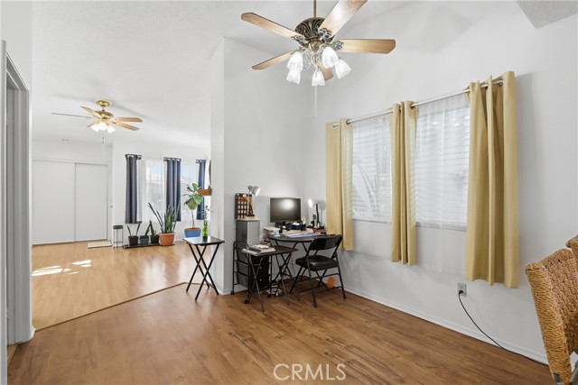 Welcome to 29350 Murrieta Rd in the desirable 55+ community of Rancho Del Sol in Menifee. This beautifully maintained detached single-story residence blends modern comfort, smart energy-saving upgrades, and low-maintenance living. From the moment you step inside, you’ll appreciate the open, light-filled layout featuring a spacious living room with vaulted ceilings, wood laminate flooring, a cozy fireplace, and elegant French doors. These doors open to a private, freshly painted atrium with a revitalized wood beam—perfect for morning coffee or enjoying a gentle breeze. Energy efficiency takes center stage in this home. Newly installed dual-pane windows flood the interior with natural light while boosting insulation. Two newly added rooftop wind turbines above each bedroom provide whole-house airflow by expelling warm attic air, helping to keep energy costs low. Every room includes ceiling fans, and both the AC and furnace are newer, offering reliable, efficient climate control year-round. A smart Google Nest thermostat completes the package, giving you effortless temperature management from anywhere. The kitchen features tile countertops, a breakfast bar, new vinyl flooring, new window blinds, and plentiful cabinets. Two generous primary suites, separated by an airy atrium. Each impressive suite features vaulted ceilings, walk-in closets, ceiling fans, and ensuite bathrooms with a newly upgraded sink in the guest bath, offering privacy and convenience. The peaceful backyard embraces tranquility with no rear neighbors and direct access to walking, jogging, and biking trails. Enjoy a spacious covered patio with tile flooring, a new steel east-facing door for excellent morning light and Feng Shui, a new fence, and fresh exterior paint. A long driveway and attached 2-car garage with a new garage door opener and new fire-rated door to the guest suite offers ample parking and a secure, alternative, entrance to the house. Additional upgrades include fresh interior and exterior paint, a newer water heater, and new vinyl flooring in the kitchen, dining area, and bathrooms. The HOA covers exterior stucco, paint, roofing, fencing, gates, and front-yard landscaping for true low-maintenance living. Community amenities include a pool, spa, and clubhouse, all just minutes from Menifee’s shopping, dining, and recreation. This move-in-ready home delivers comfort, efficiency, and convenience—perfect for enjoying a vibrant yet peaceful 55+ lifestyle.